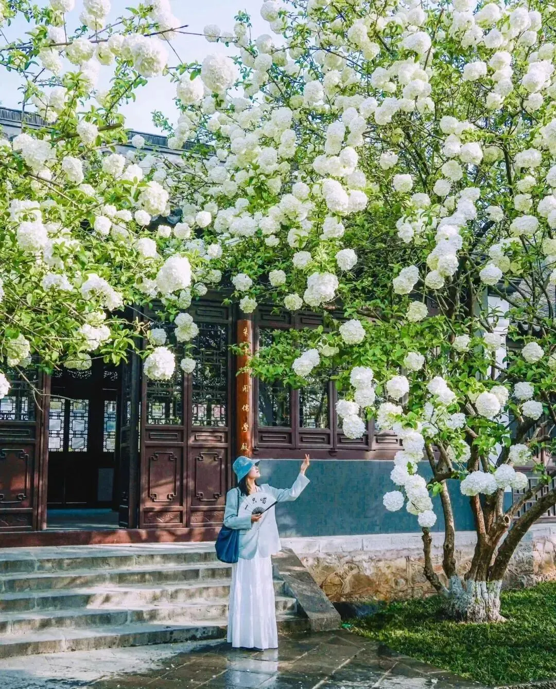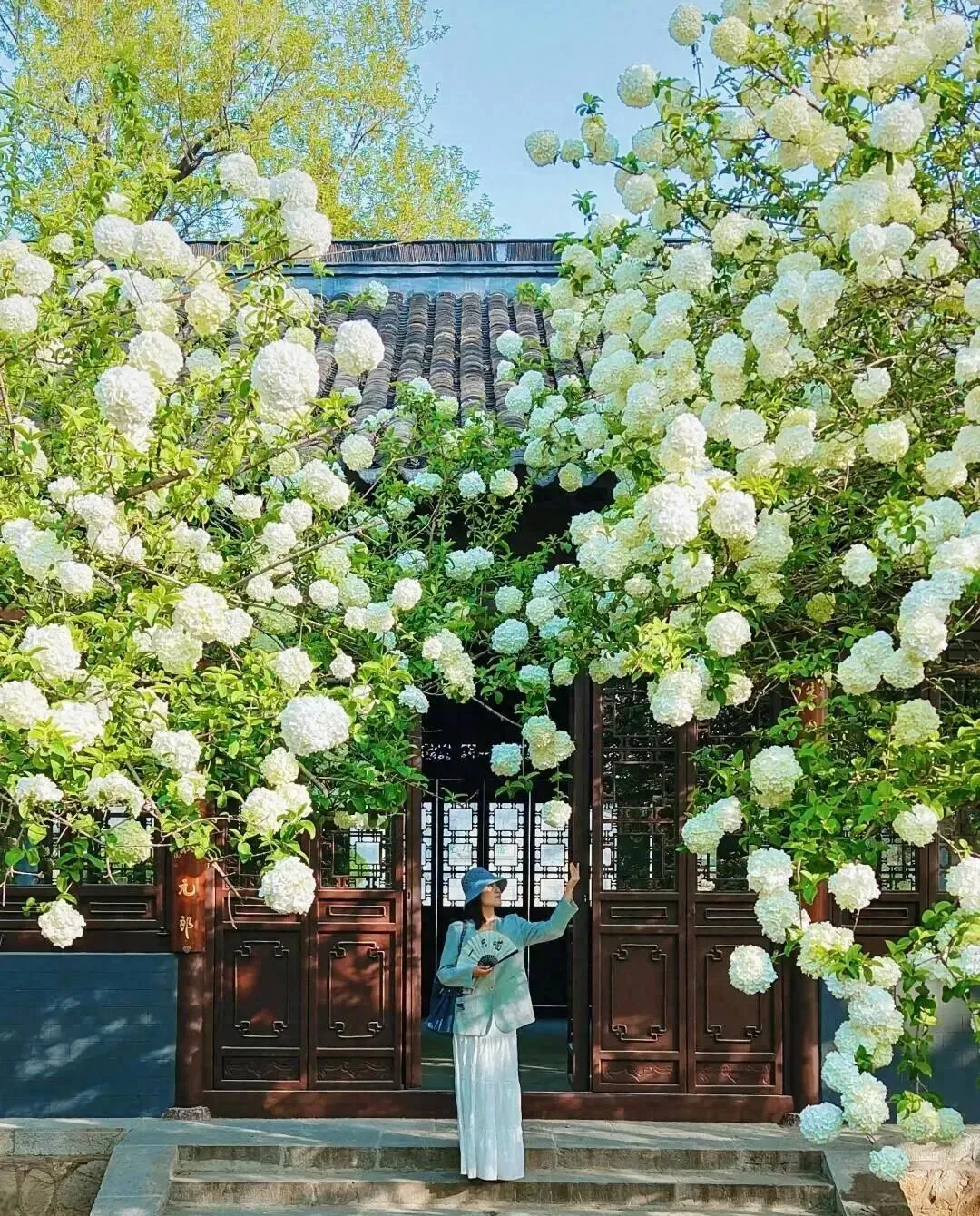 白的 , 绿的 , 一团一团挂满枝头 , 配上明代老建筑 , 直接把我看傻了。