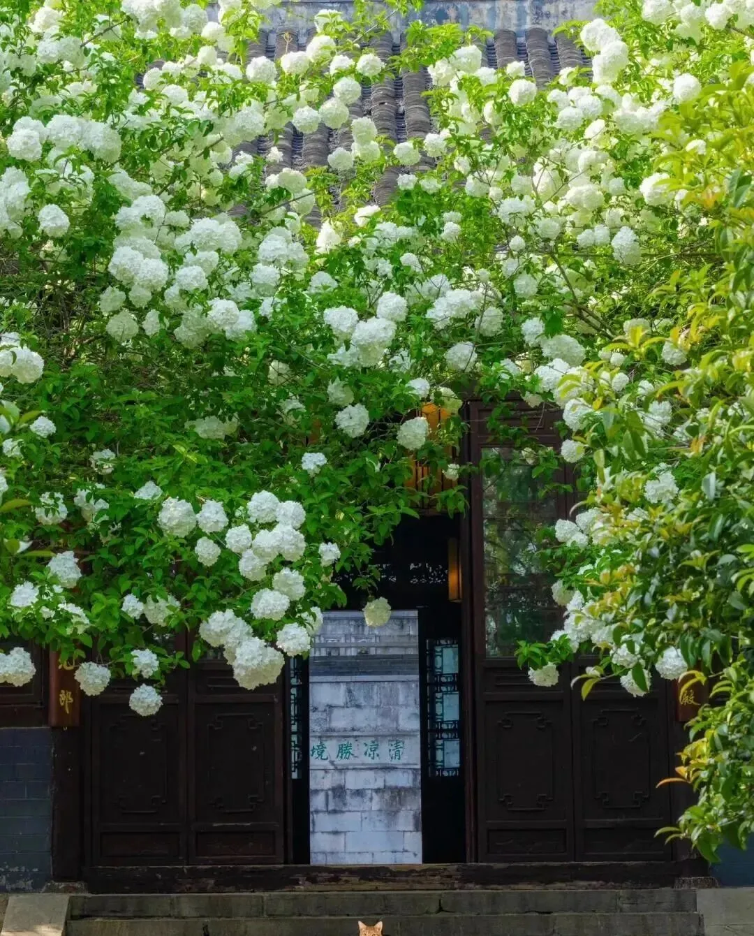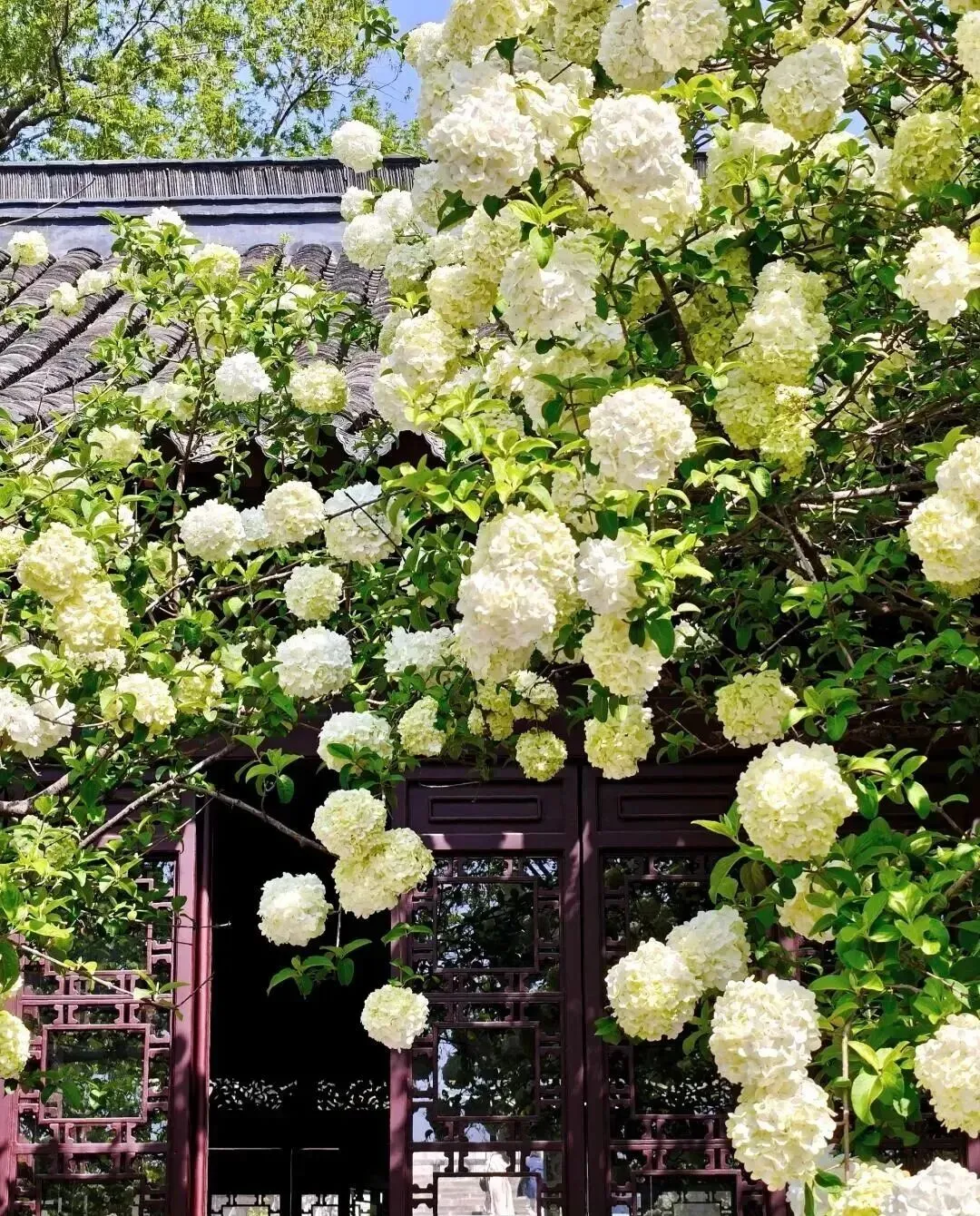 南京有个书院 , 450年了 , 院子里两株木绣球正在疯狂开花。