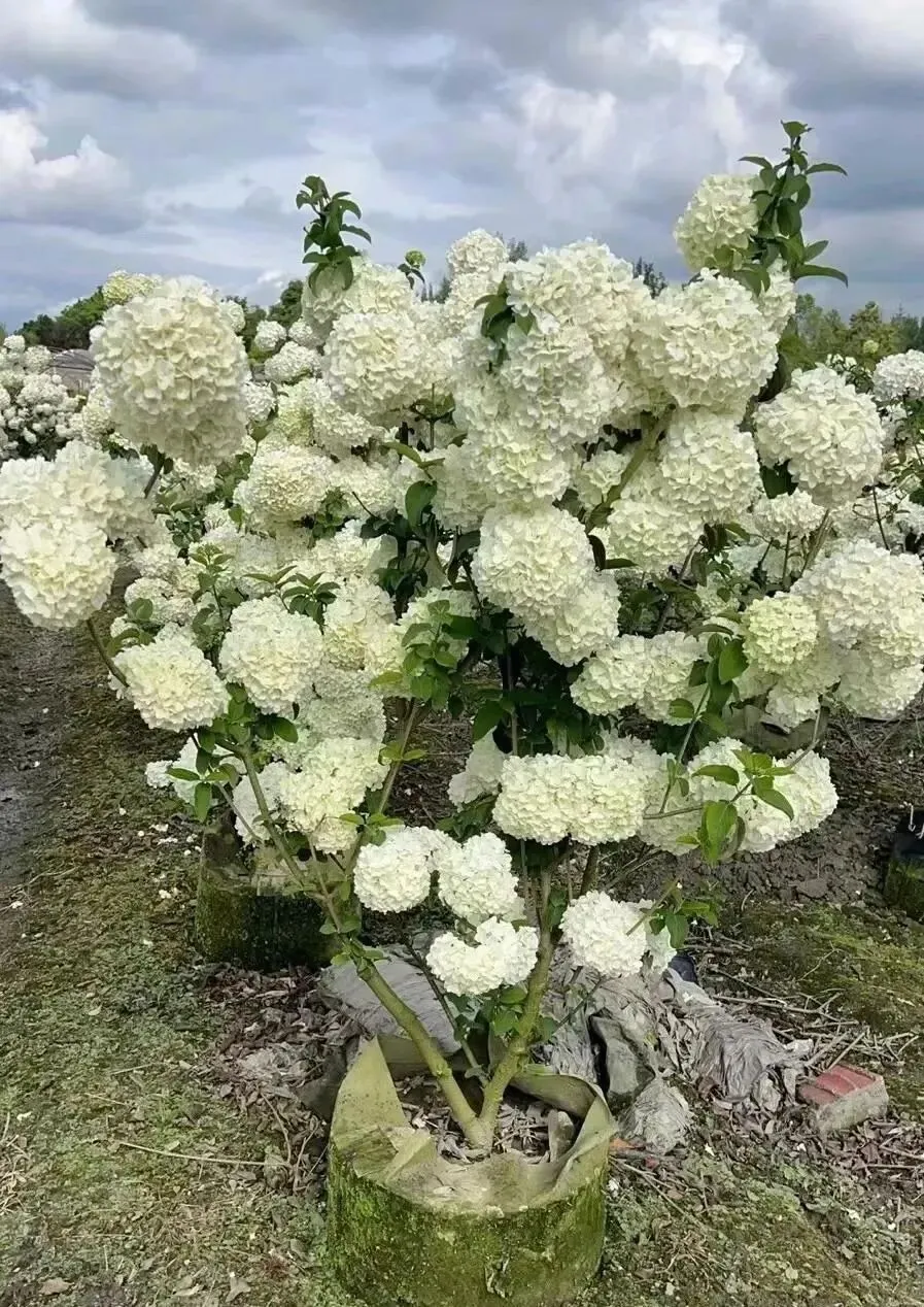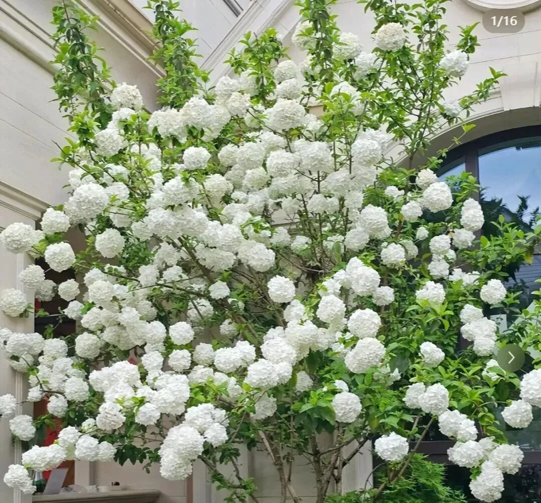 木绣球成树之后 , 整棵树开满花 , 站在下面抬头看 , 真的会哭。