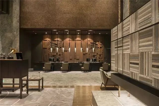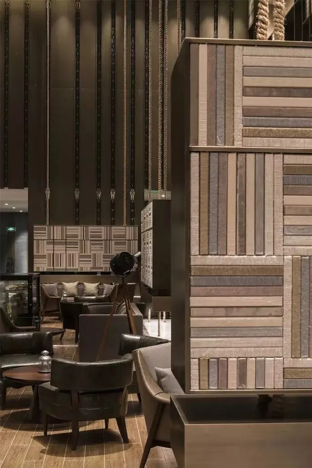 在大堂的设计中,采用具有年代和历史感官的金属板组合拼接构成艺术墙,象征着民国时期坚强的爱国精神和勇于接纳新事物的态度。沉稳的木质家具,被引入空间,一点点填充,这是一种时间的记忆,安静兼顾力量。