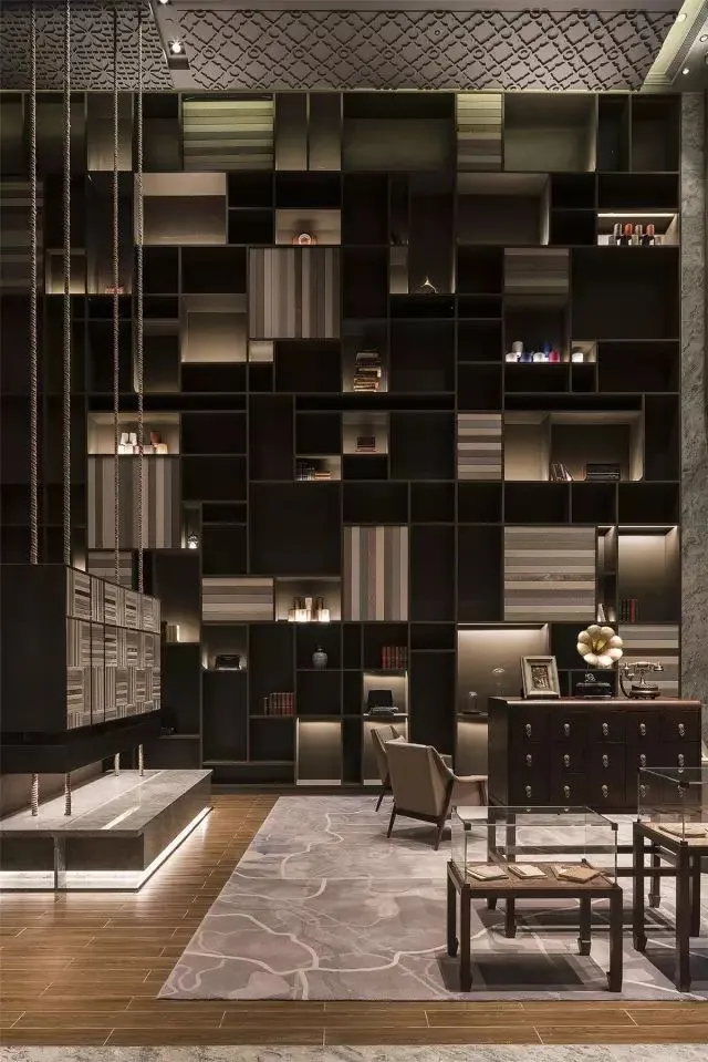 床背景上有序的排列着代表那个时期服饰文化的旗袍扣,结合精心挑选和设计的复古摆件,让人置身于一个时代的辉煌又坐享现代生活高端的品质。室内设计使传统与时尚更好地融合为一体