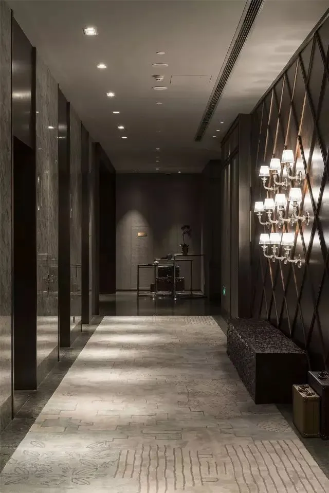 除了满是情怀的女子,艺术也是民国时期南京不可或缺的存在,并尤以绘画最为盛行,电梯厅巧妙的展现了这一切。墙面满幅的云锦采用当代的颜色演绎民国图案,与LED屏幕放映的黑白电影相搭配,用静态与动态的生动结合,营造独特的视觉享受。