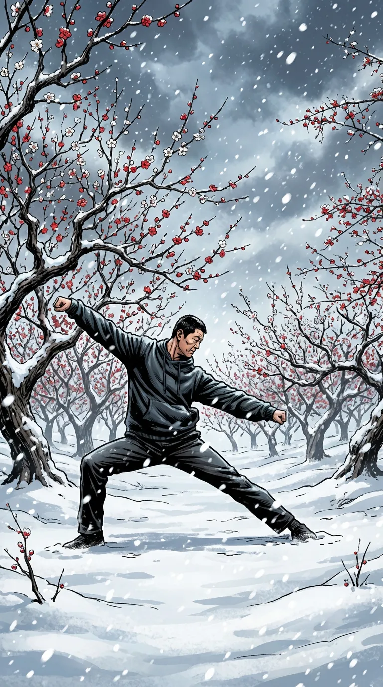 最后做成后,还要有一个整体前抱的劲。但我刚做成的时候整个身体便颤抖不止,没法再继续体会下面的劲了。其实,能做到全身颤抖、甚至很多肌肉都在颤抖,这也是整劲的一个表现,以前只是单纯腿或者胳膊在颤抖,看来还是没有练成整劲。