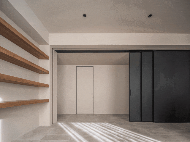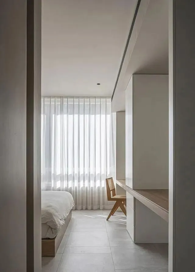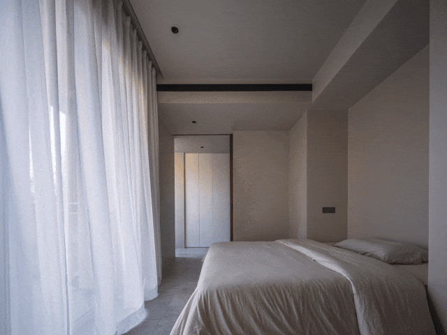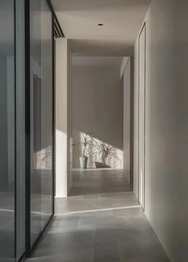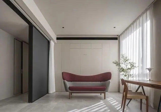 最妙的是用玻璃推拉门分隔空间 , 既不挡光 , 又能保持整体极简的调性。