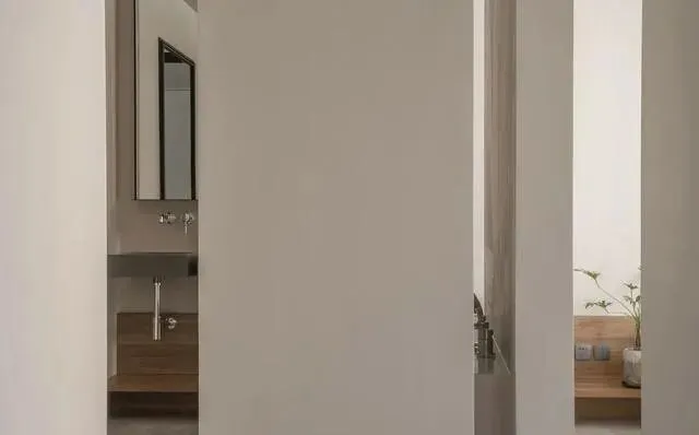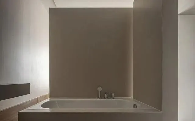 浴缸藏在后面 , 墙上留了缝隙 , 若隐若现的 , 既保护隐私又有设计感。 第一次见的时候 , 我愣了好几秒 , 这脑洞也太妙了吧!