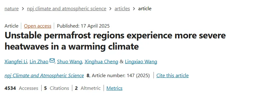 Li, X., Zhao, L., Wang, S. et al. Unstable permafrost regions experience more severe heatwaves in a warming climate. npj Clim Atmos Sci 8, 147 (2025). https://doi.org/10.1038/s41612-025-01037-5