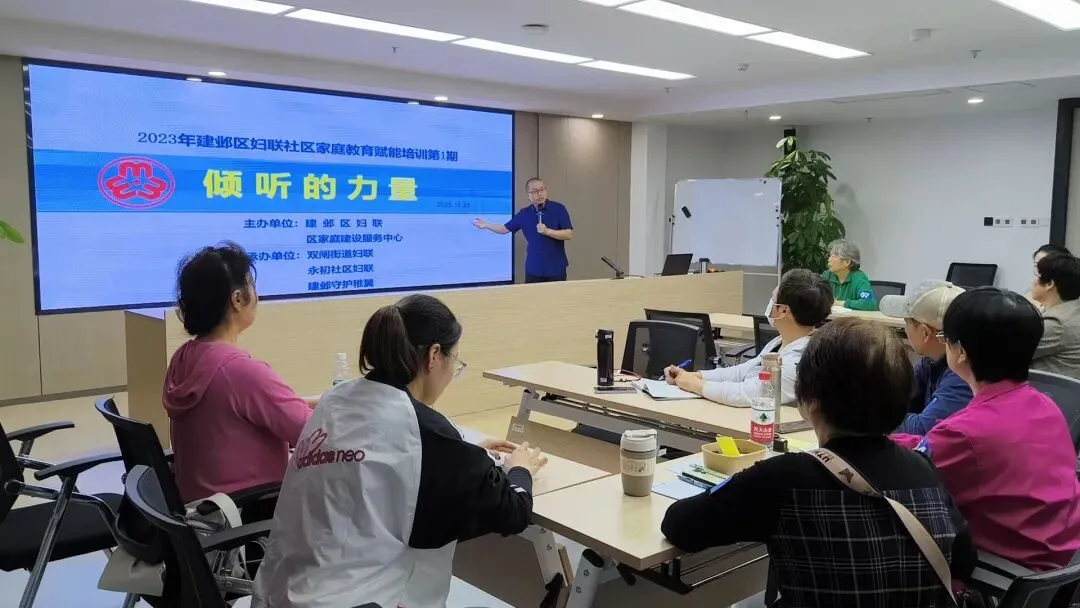 建邺区高度重视家庭工作人才队伍建设,着力打造三支骨干力量:一是专业指导队伍,聘请8名“家庭成长辅导师”与6个街道结对,提供专业支持服务;二是志愿者队伍,组建由社区家庭教育骨干、隔代教养志愿者、中小学老师、全职妈妈等构成的志愿者队伍百余人;三是基层妇联队伍,加强区、街、社三级妇联干部培训,提升家庭工作专业能力。