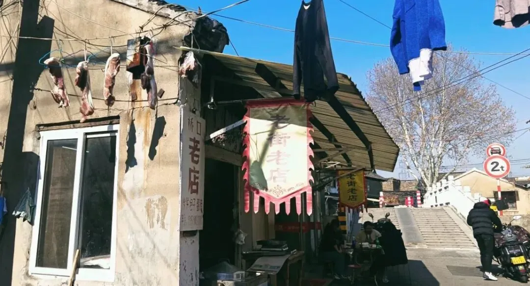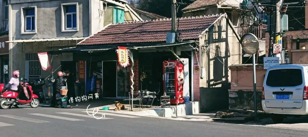 然而,昨天下午半日二小时的一番闲逛,确让我产生了一种特别惬意和享受的悠哉感,本来我对这次前往的目的地,位于南京城东栖霞区的“龙潭古镇”没有抱太多期待,因为现在各个地方稍微具有民俗地方特色的某小城、小镇、街道可能都已经被打造成网红潜在打卡地,越是名气大了,越是千篇一律。不过,当我昨天进入“龙潭古镇”的地标领域之后,带着边走边逛的心情,发现这里没有那种网红地的气息,这一片更像是一种扎根与此的世代普通居民及后代的常态生活区,我开始从竖立着古镇地界名称的标志处进入了阡陌巷里,一路收获的是过于热烈的冬日灿阳、突然偶遇的一楼临街的“缝纫室”:那位坐在窗口的裁缝大姐正在踩缝纫机,我向她身处的那间一居室张望了一下,里面的陈设居然是上世纪八十年代的风格,她端坐干活的模样沉静专心,就像一个老电影里的镜头。偶遇于我来说,是任何旅程中最令人兴奋且期待的,接下来我在这里相继遇见了寿衣花圈店门口的大黄狗狗;站在名叫“黑桥”的桥上,向远望去有低矮的山峦映入眼帘,向下俯望发现了一只长嘴细腿的白鸟正在河堤边守着觅食;一束在背阴处家养种植的粉色蔷薇、一盏高挂在商铺门头上的传统中式红色灯笼;当我沿着全场约一公里多的河堤漫步时,脑海中冒出的是一部周迅演的老电影名字《苏州河》和民国作家沈从文的小说《边城》。