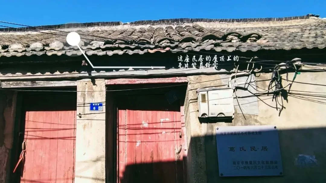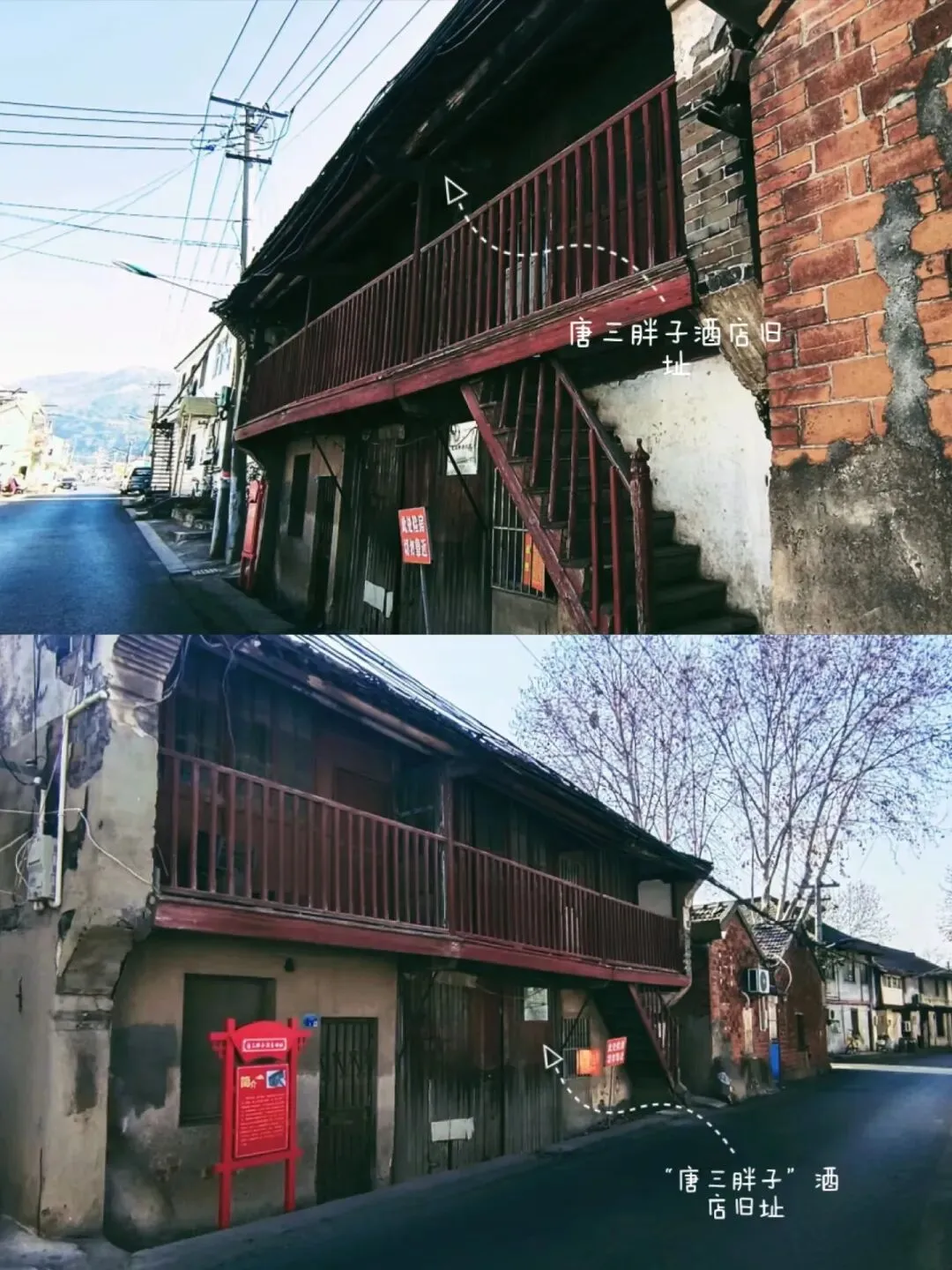 冬季有些干涸的河流两岸留存着低矮的住宅建筑,它们背靠起伏的山峦,此刻一切想象中该有的景致都具象化了,我瞬间明白了“龙潭古镇”的“古”字不是仿古,作为一名外来人员能感受到这里历史文化民俗古朴的气息,这种气息不是“旧时堂前”的门阀距离感,或乌衣巷口的烟花柳巷般的纸醉金迷感,这里透露着旧时商贾云集交通贩售买卖的热闹且不失自我秩序的小家业感。当我停下来站在一处临街布满斑驳红漆的二层木楼建筑前,情不自禁地被它的外楼梯吸引,这个楼梯设计一看就是给外来客人用的,果然在这个看似不起眼普通的二层小木楼外,立着一块简介:“唐氏民居”是一幢坐南朝北的砖木结构二层楼,楼上有木栅栏走廊,由绰号“唐三胖子”的当地人唐国泰建于民国初年,至今保存完好,没有改动过,唐家人经商居多,在龙潭素有“唐半街”之称。当我看得颇有滋味时,忽然耳旁传来一个骑着电动三轮车的当地大爷的声音:“这有啥好看的啊,你不如去拍拍宝华山的那个尼姑庵。”我一听,不禁窃笑,随口应和一句:“哈哈,这楼有特色。就像《武林外传》里的同福客栈。”总之,这里能看见不少保存完整的非仿制旧民居,它们曾属于那些普通的劳苦大众,商贾小生意人,宛如打开宋代清明上河图画卷。。。。。。