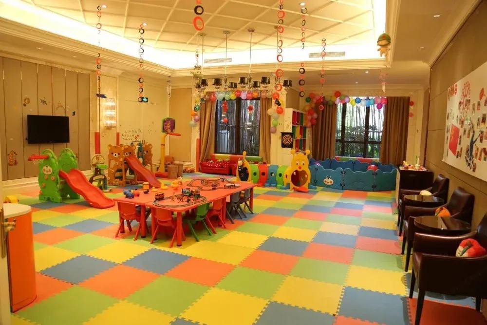 室内有蹦蹦床、儿童电影吧、决明子挖沙池、游艺室等,仿佛一个“梦幻多姿的世界”,这里是父母和孩子共同的小小世界,沉溺进柔软的儿童乐园时光~