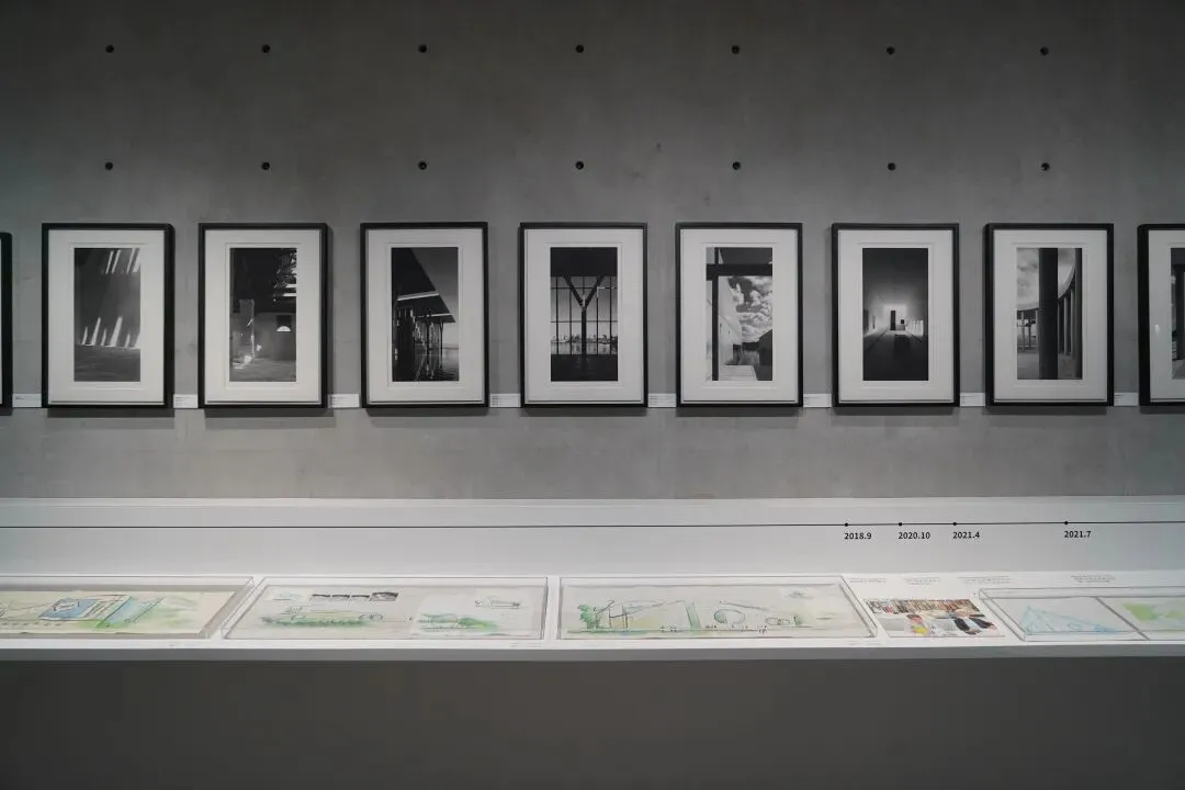 负一楼某区域展示了安藤忠雄画的H+美术馆设计草图。