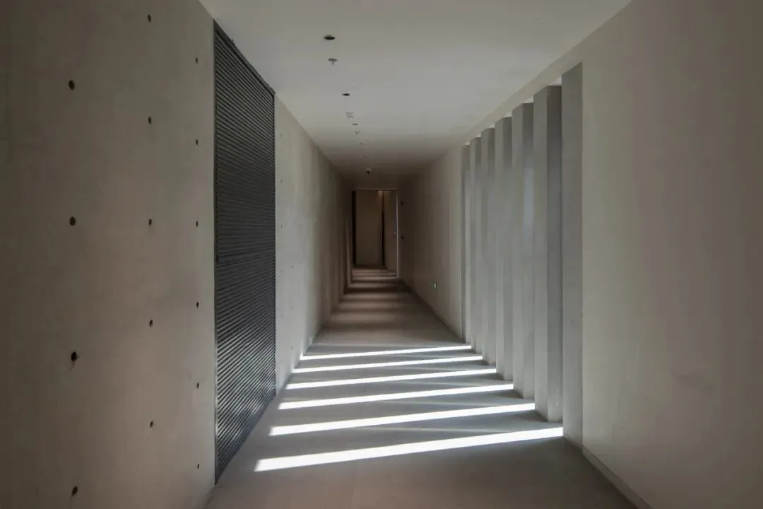 建筑内部的“光影魔法”不定时上演。清水混凝土的设计,让阳光有了形状和轨迹。当我们在展厅移动,光线也在墙面上缓缓移动,混凝土的冷峻被暖阳的温柔所中和,忽然就get了大家所说的“安藤式”的浪漫。