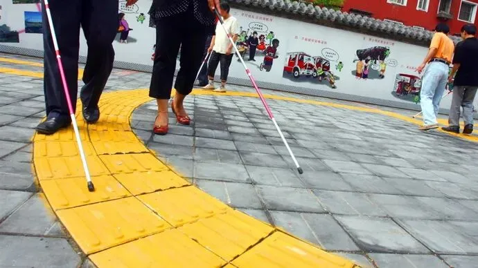 我还了解到,有些盲道看着完好,实际藏着不少隐患,比如部分路段用了不锈钢材质,下雨天特别滑,盲人走在上面容易摔倒;还有些盲道会被石球、电动车挡住,或者衔接处有高低差,一不小心就会崴脚。这些看似不起眼的问题,都让视障人士不敢轻易出门。
