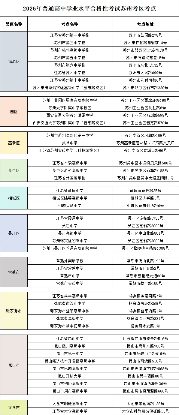 苏州的考点已经公布