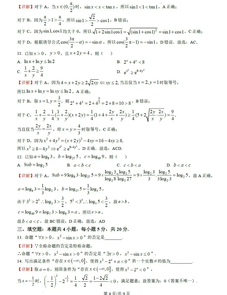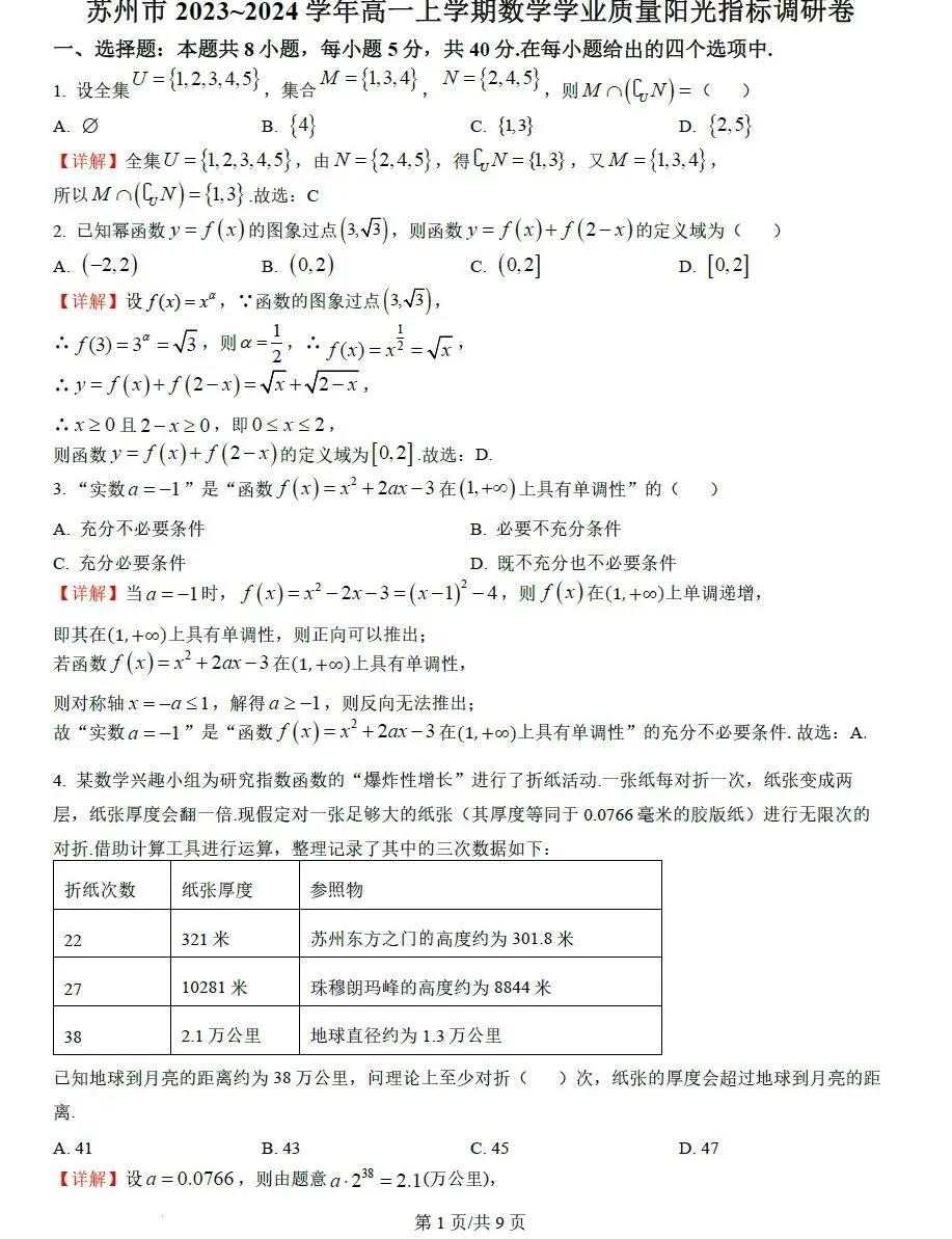 >苏州市2023-2024学年高一上学期数学学业质量阳光指标调研卷.期末复习