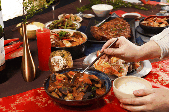 8;10人一桌10菜1汤。因考虑到食品安全问题,一律不代加工食物。