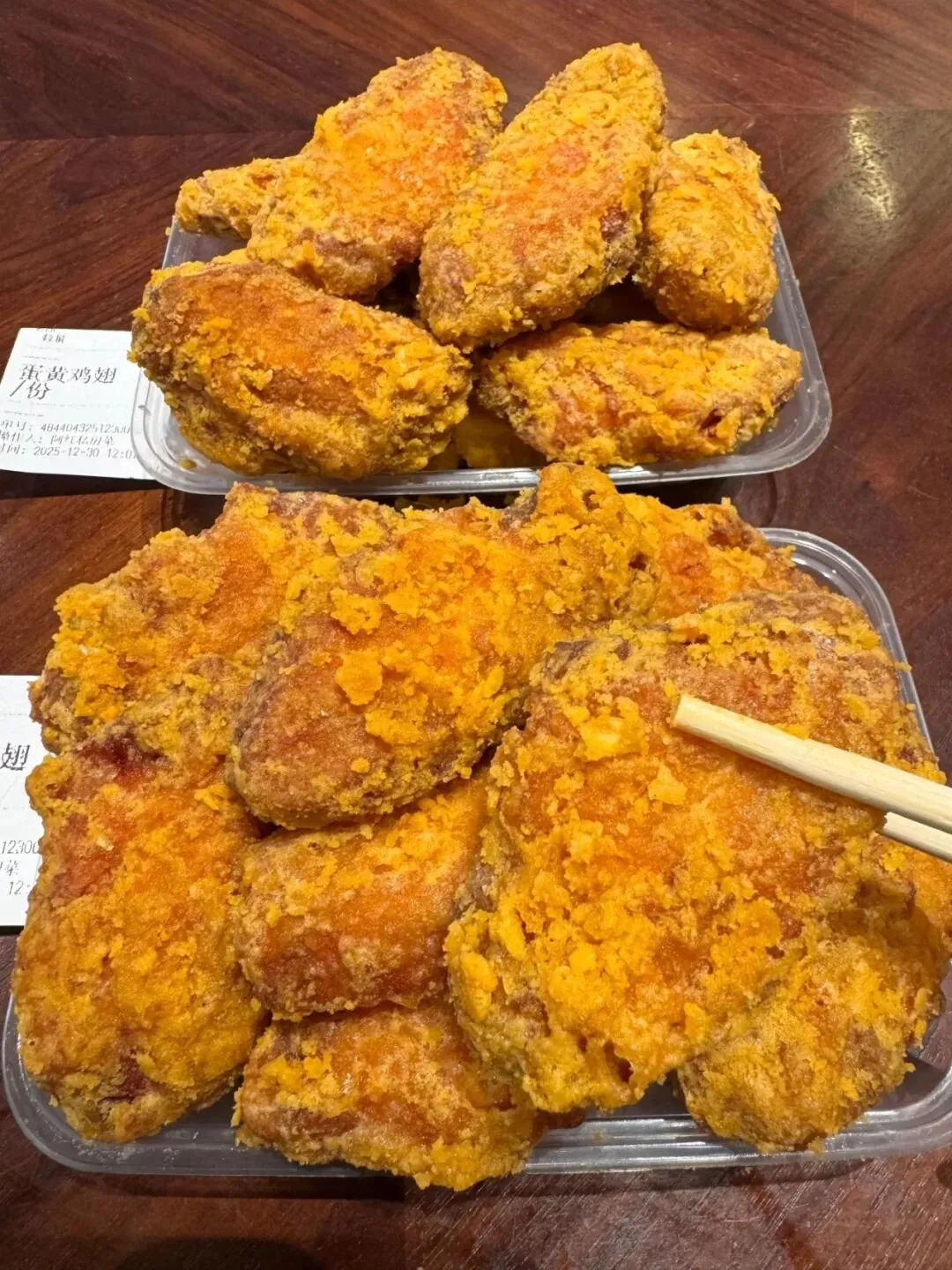 薯片牛蛙和咸蛋黄鸡翅更是绝,外皮炸得酥酥脆脆,内里入味到骨子里,吃完果断打包两份带回家!