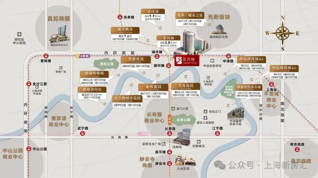 于10万➕、千万级别圈层的价值版图中,【苏河映】单价、总价都不到周边的一半价格,是当下难得的价值洼地