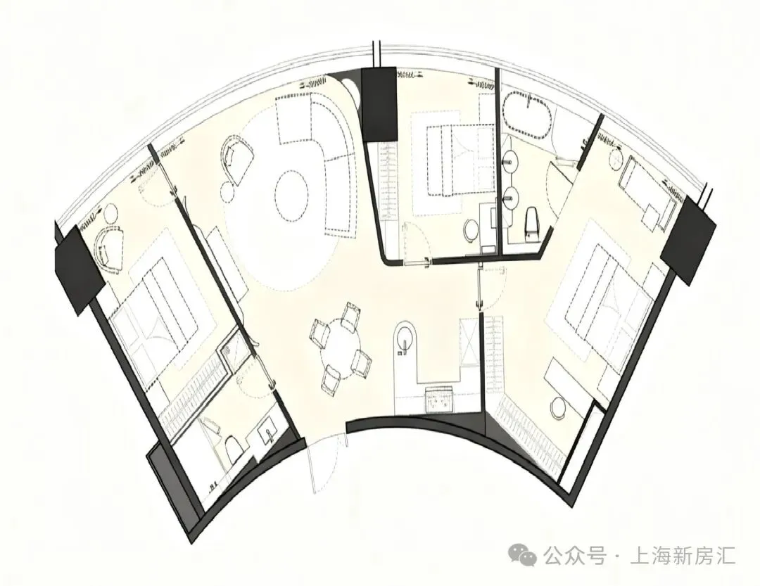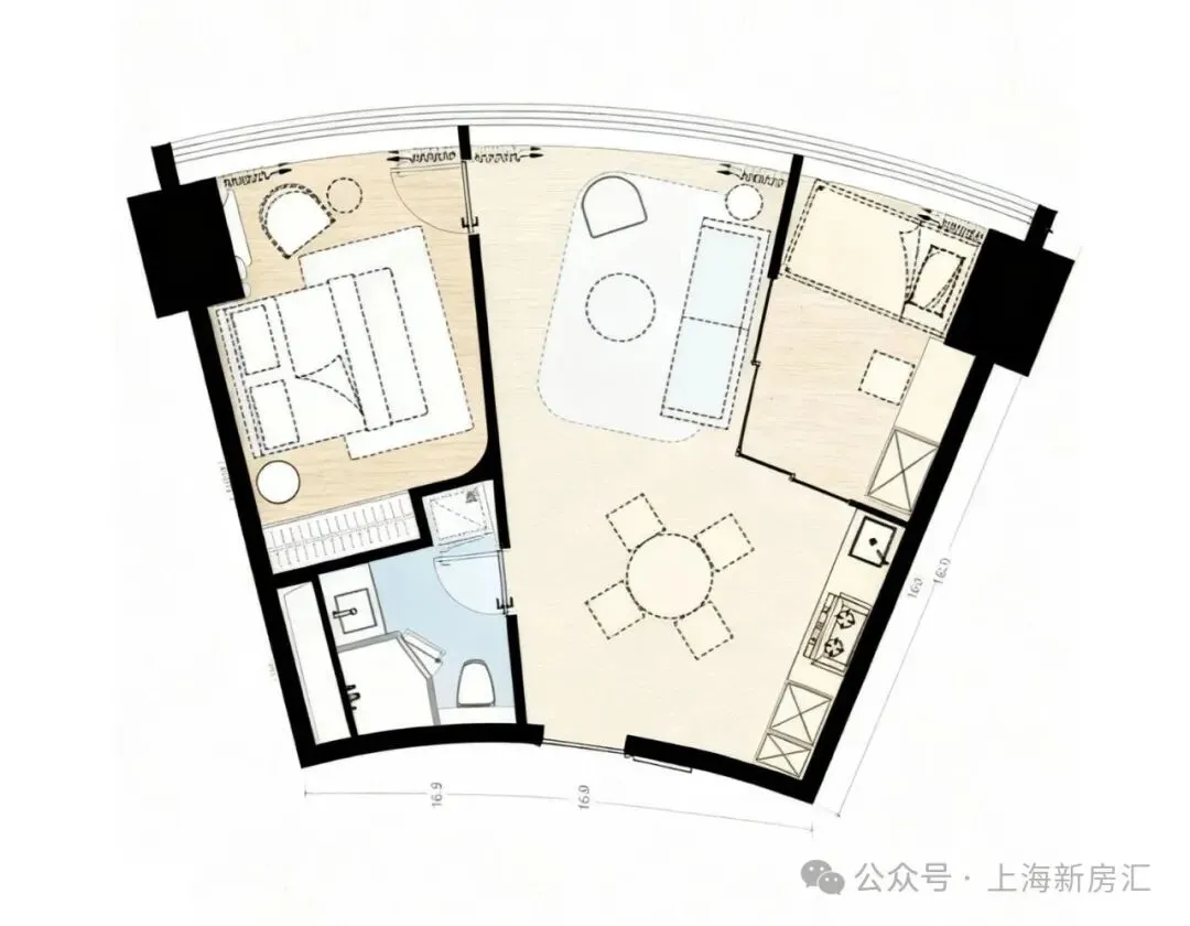 户型优势:220度视角俯看苏州河(板块唯一)‼️仰看陆家嘴天际线,6米宽开间扇形大客厅 开间面更广