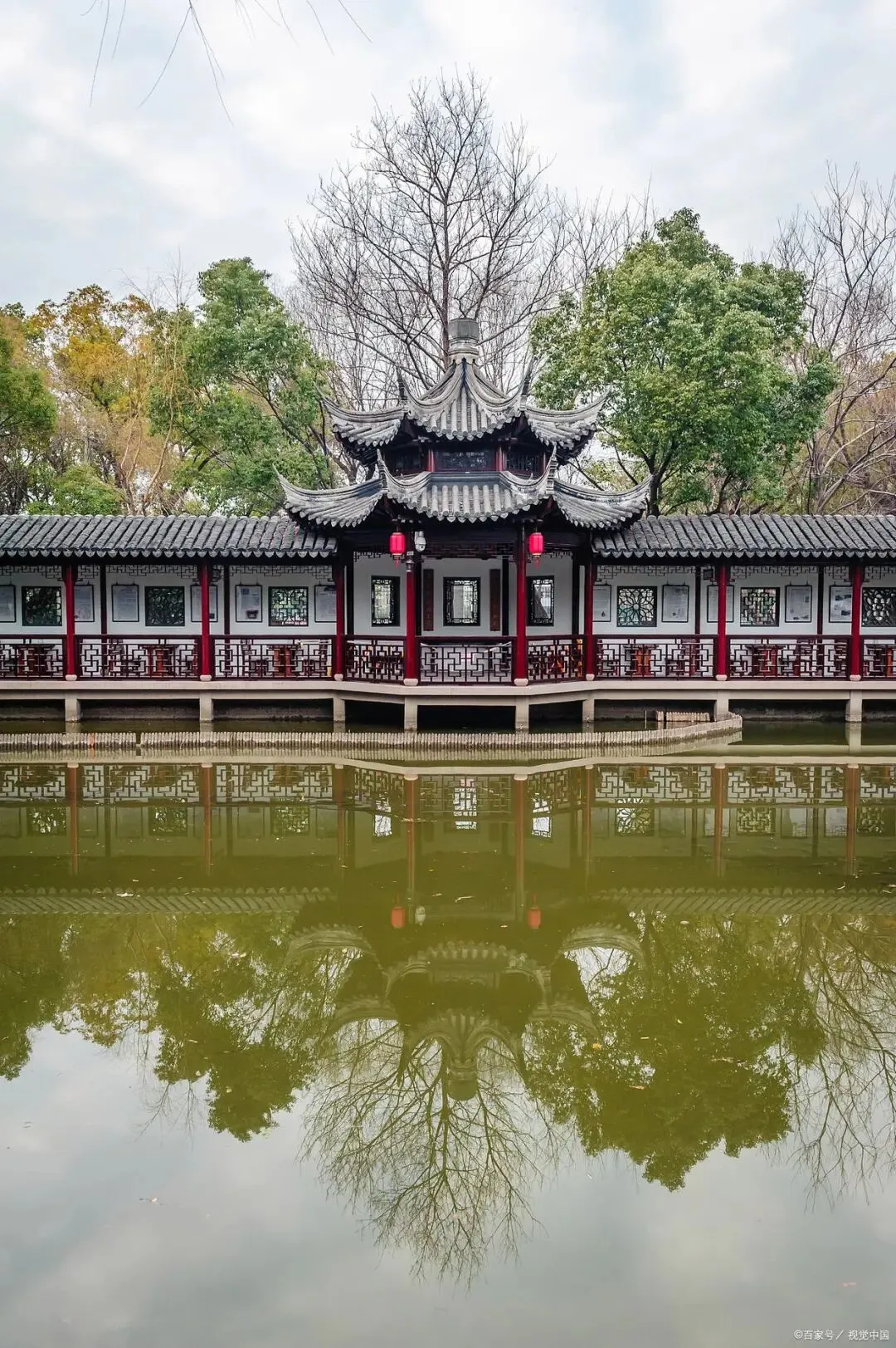 我漫步至镜阁,据说这里是董小宛生前最喜欢的地方。凭栏望去,园内水景尽收眼底,水面如镜,倒映着周围的亭台楼阁。