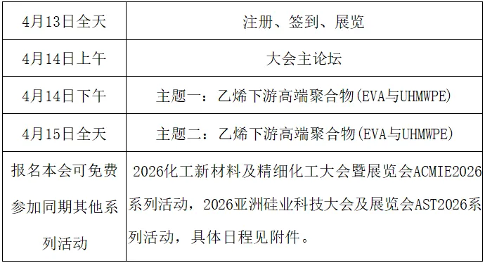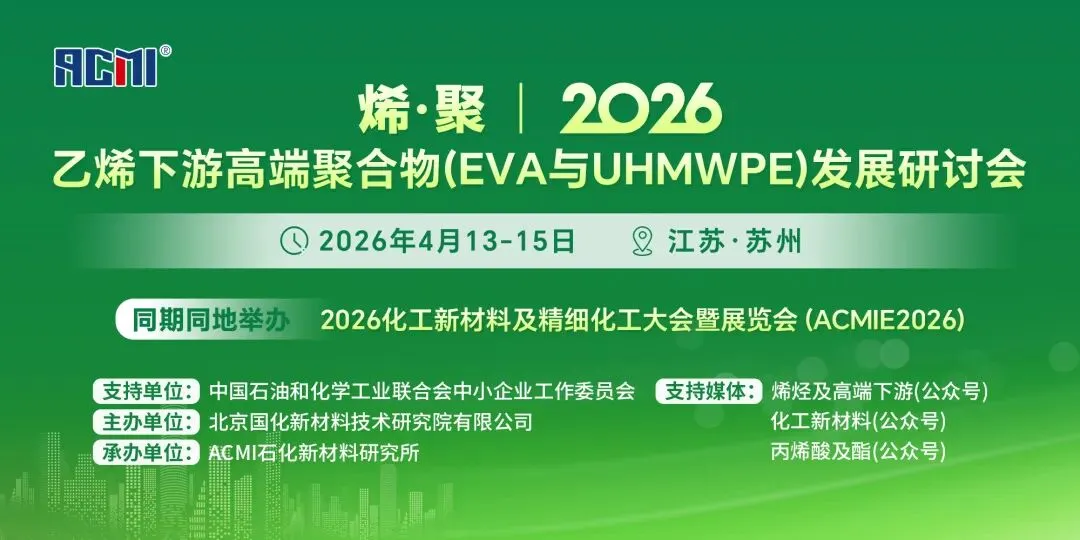 4月苏州!烯·聚|2026乙烯下游高端聚合物(EVA与UHMWPE)发展研讨会