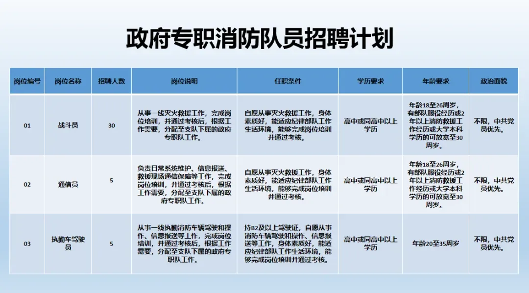 为有效履行防范化解重大安全风险、应对处置各类灾害事故的职责使命,相城区消防救援大队现面向社会公开招聘政府专职消防员。有关事项公告如下:
