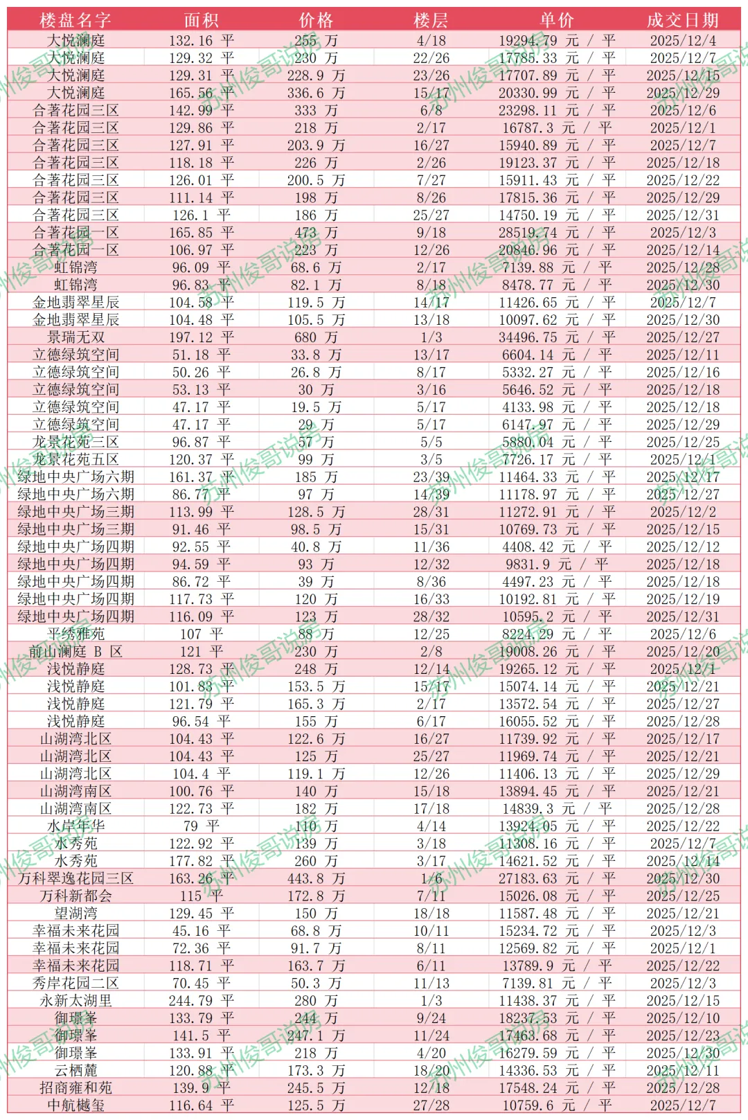 对于数据简单说一点,科技城的12月份的成交对比11月份提升一些,大家都知道科技城购买人群里面,有不小一部分是跟着书包来的,年前本身就是书包购房者选择的一个好时机,所以成交整体稍微提升一些。但是对比价格,稳,但是同比没有出现回温的迹象,而且价格确实跌出了黄金坑,这估计也是有一些客群入手的原因,另外还有一点,可能是板块新房基本上没有选择,所以大家都会去二手房淘一淘性价比高的。在科技城的价格面前,尤其是在新区西边生活工作的,可以把关注点,从阳山,马涧,通安,枫桥,转移过来了。科技城的价格,环境相对是蛮适合的。我直播中的观点,重复一遍,并不是应为价格下降了是板块能级不行,21.22年,楼市热度高的时候,科技城可是碾压苏州众多热销板块登顶苏州板块NO.1的,价格下行的因素众多,关于数据,我就不阐述原因了,后期我会出一些文章,阐述一下我的观察和观点。