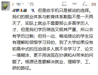 这些看似用心的举措,却在社交平台引发两极评价。支持者直言:“学生缺乏自制力,学校再不管理,难道放任摆烂?” 反对者则犀利吐槽:“大学高中化,成人巨婴化”“强制管理治标不治本,学习是学生自己的事,教学质量才是关键”。还有在读学生现身说法:“衡水模式早已透支了学习热情,课堂知识无用又无聊,与其强制管控,不如从根源解决问题。”