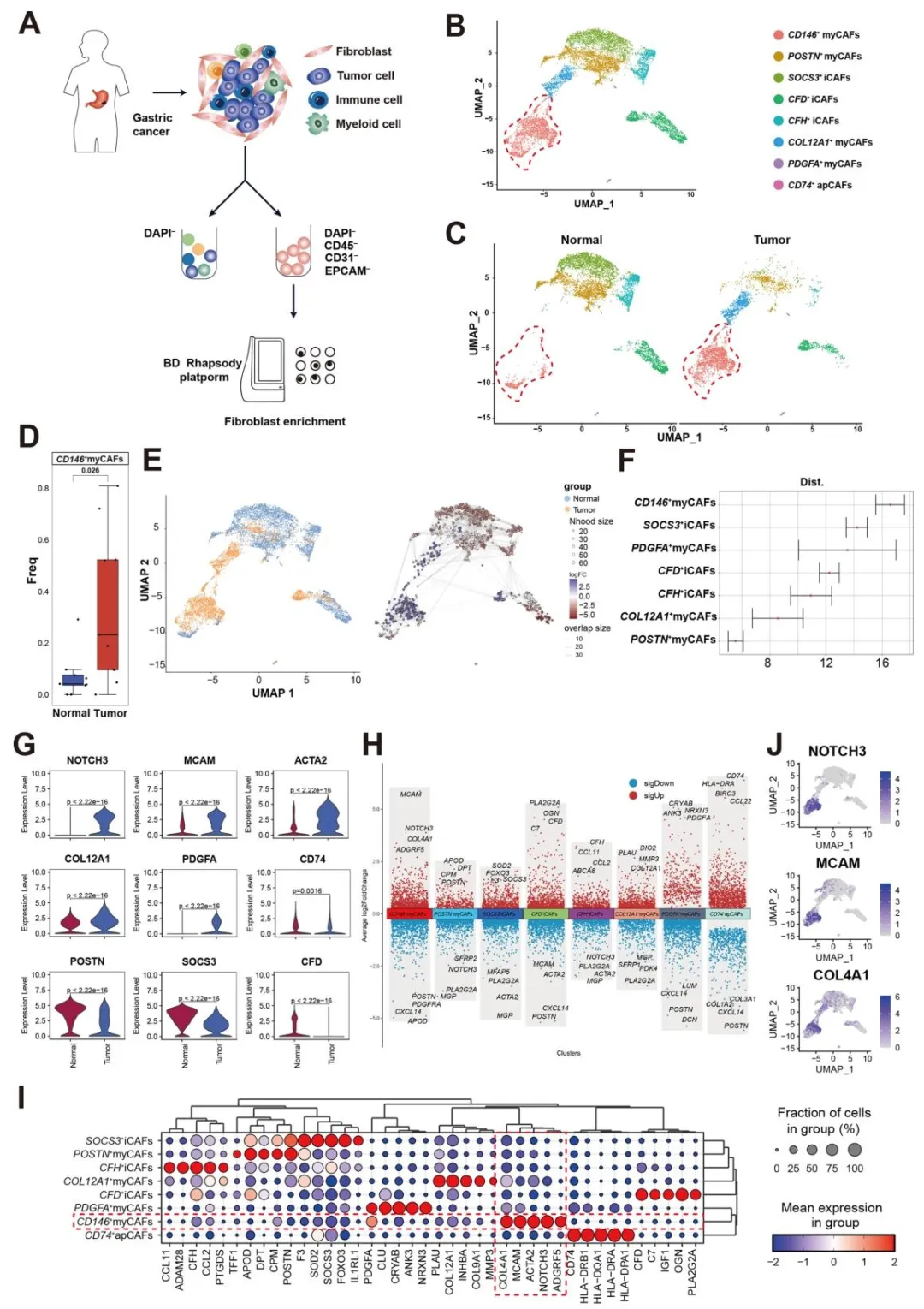 scRNA-seq 鉴定出胃癌 TME 中富集的 CD146+CAF 亚群