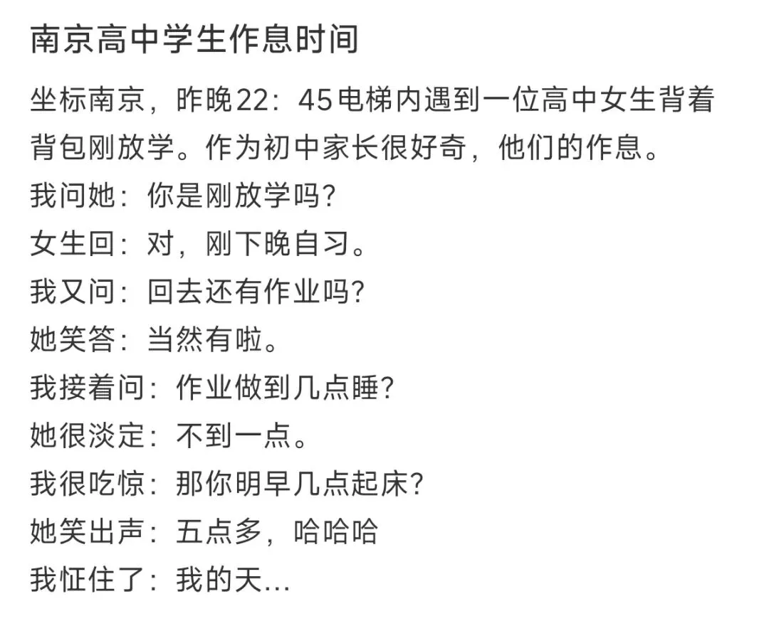 这则南京某高中生的吐槽,像一面镜子照出了高中教育里学业压力与身心平衡的拉扯,读来既理解学生的疲惫,也能窥见校方在升学压力下的无奈,两方的立场差异背后,是当下高中教育绕不开的现实困境。