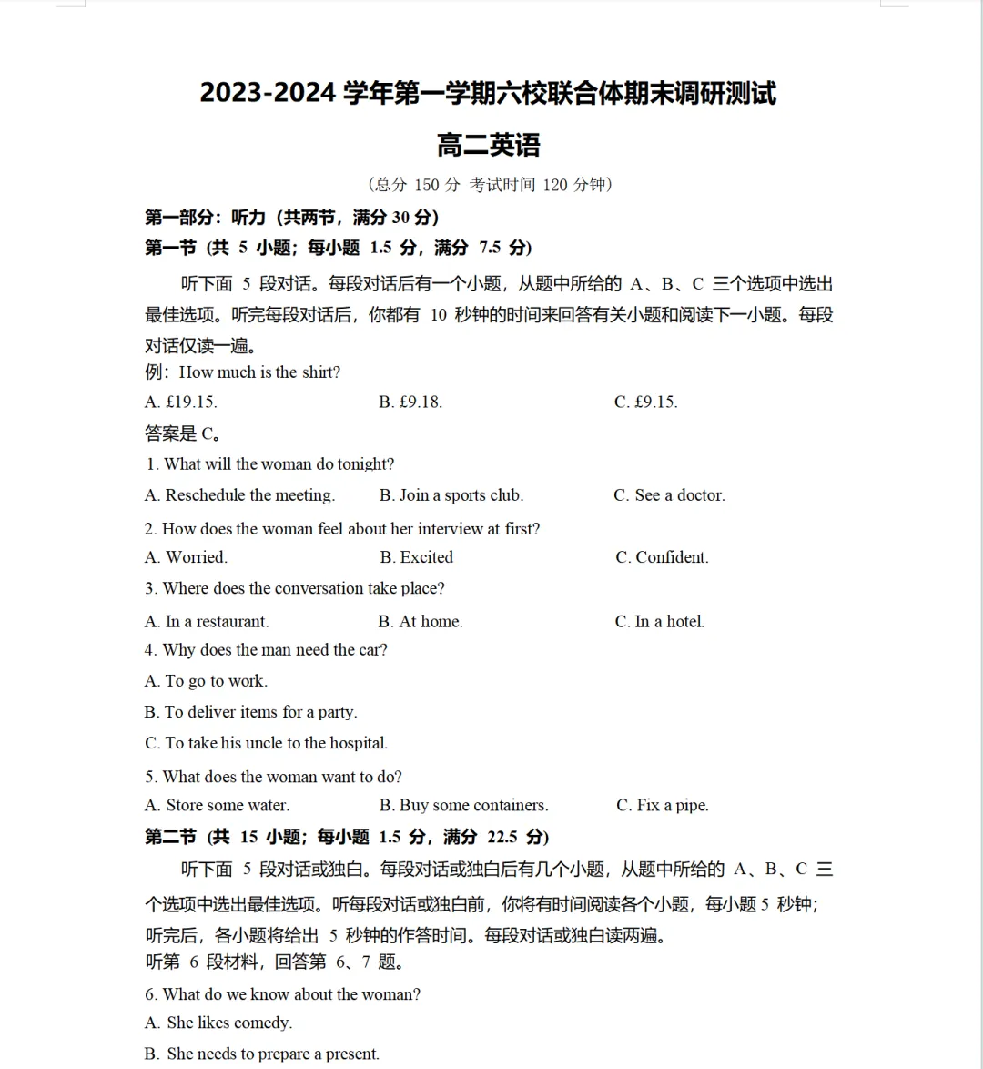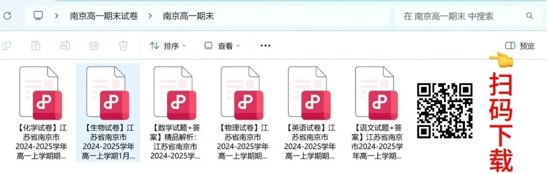 由于篇幅有限,仅展示部分,完整真题请按顺序选择高一至高三,扫码下载对应的期末真题。