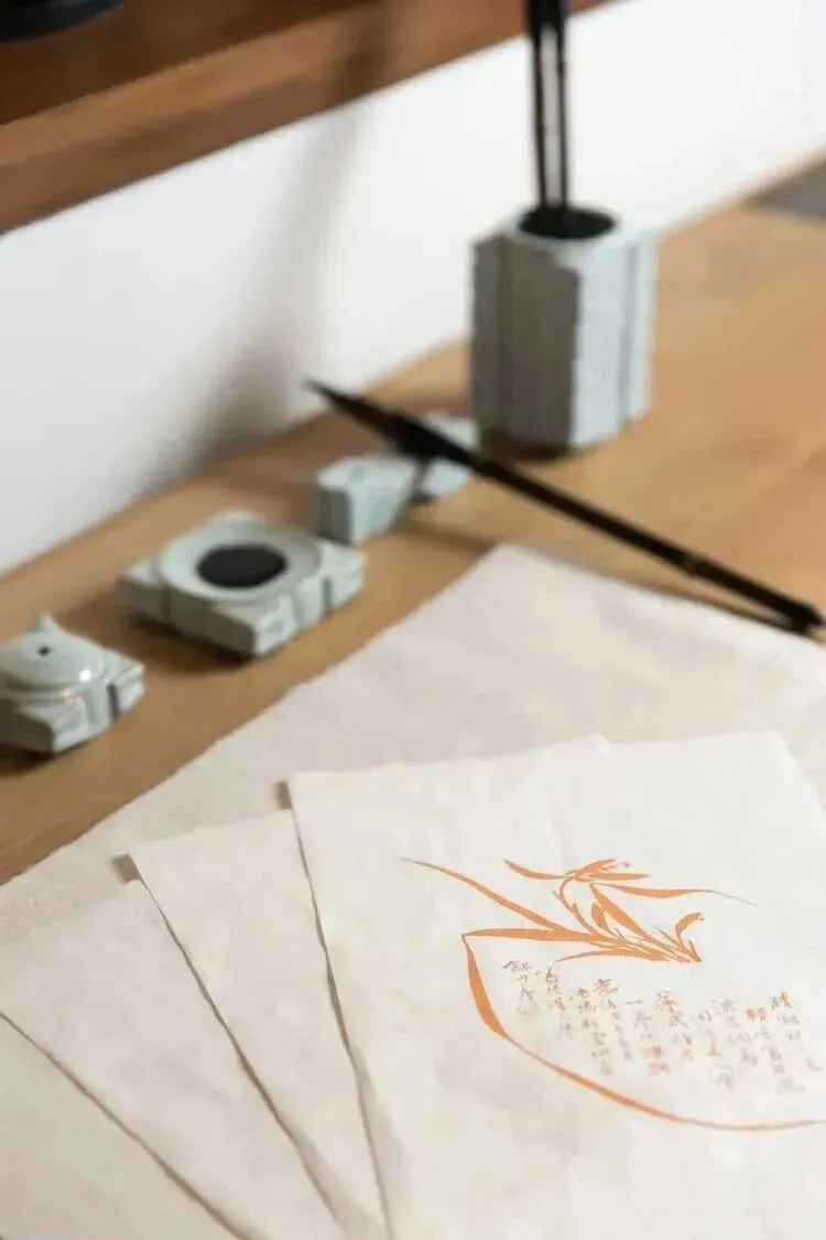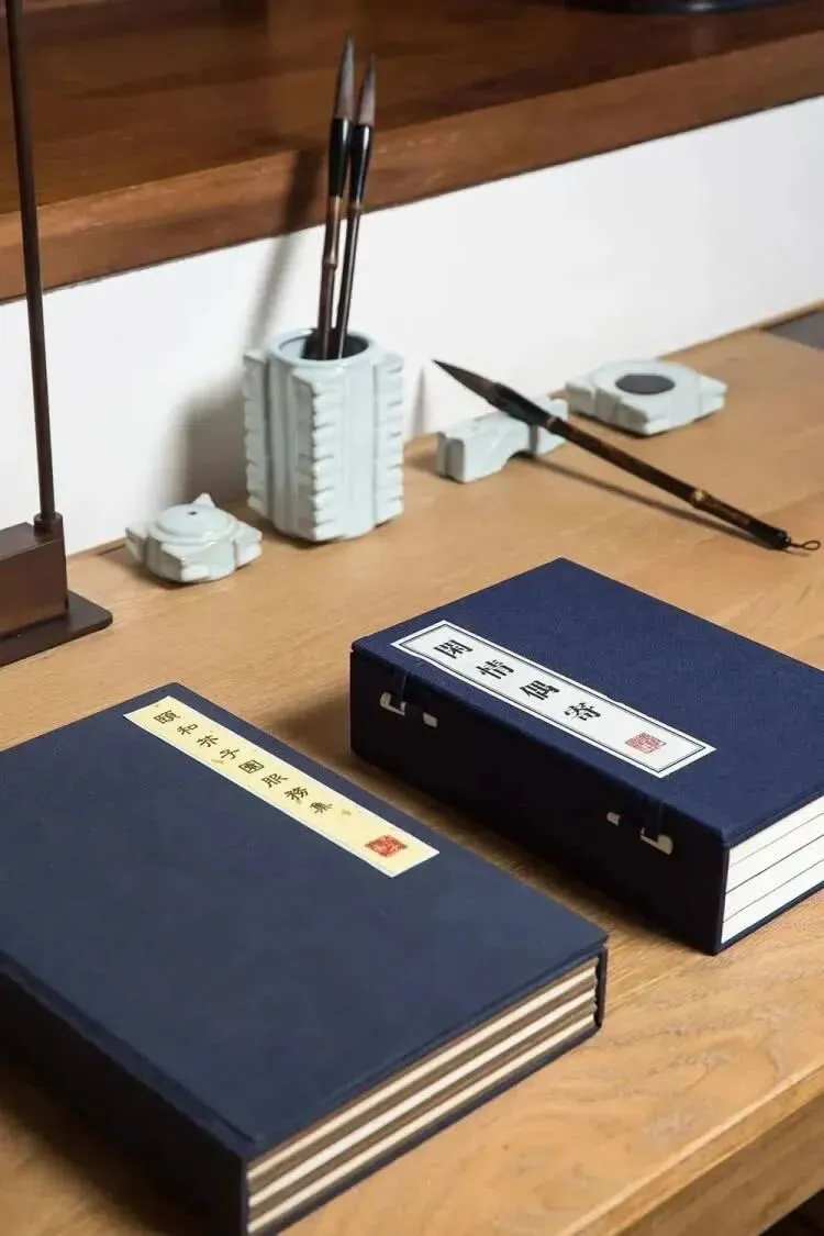 客房内满满的书香格调,有清末石印版《芥子园图谱》装裱而成的艺术品,有随手可翻阅的《闲情偶记》、整套的文房四宝、木刻水印工艺定制的宣纸信笺…