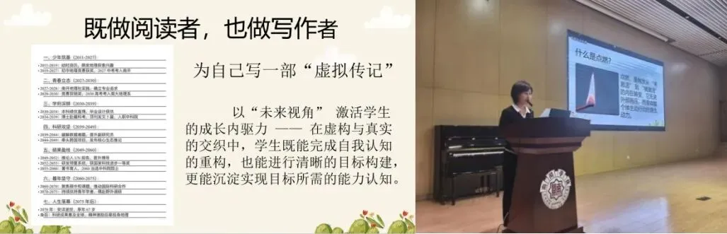 刘静老师在《以阅读为媒:点燃学生内驱力系统》分享中,构建了“目标感—阅读输入—虚拟传记—身份建构”的点燃模型。她特别强调:“点燃不是瞬时刺激,是通过阅读建立‘他者—自我’的镜像对话,在虚拟传记写作中完成对未来自我的认知预演。”现场展示的学生《人生规划提纲》已呈现出清晰的生涯发展阶段与能力映射,体现了叙事性未来思维在教育中的应用价值。