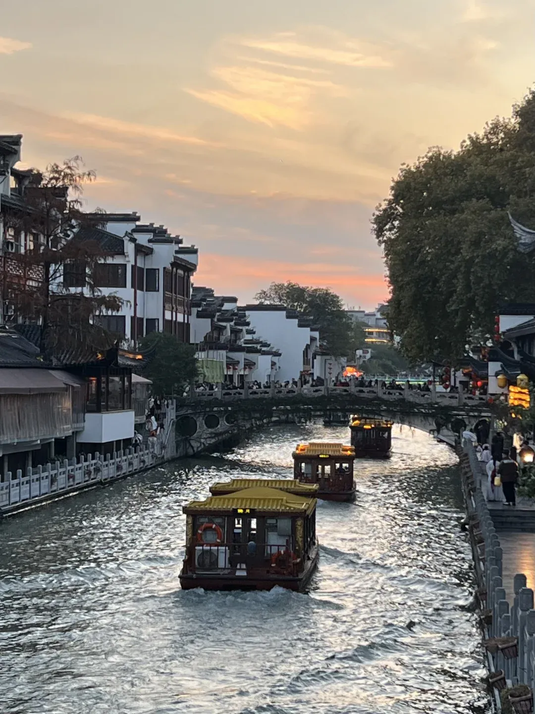 傍晚去夫子庙步行街。人群熙攘,灯火初上。都说这儿最好吃的是开封菜。但若挤得进去,南京大排档才藏着地道的喧闹与滋味。等天黑,秦淮河的游船正点亮涟漪。