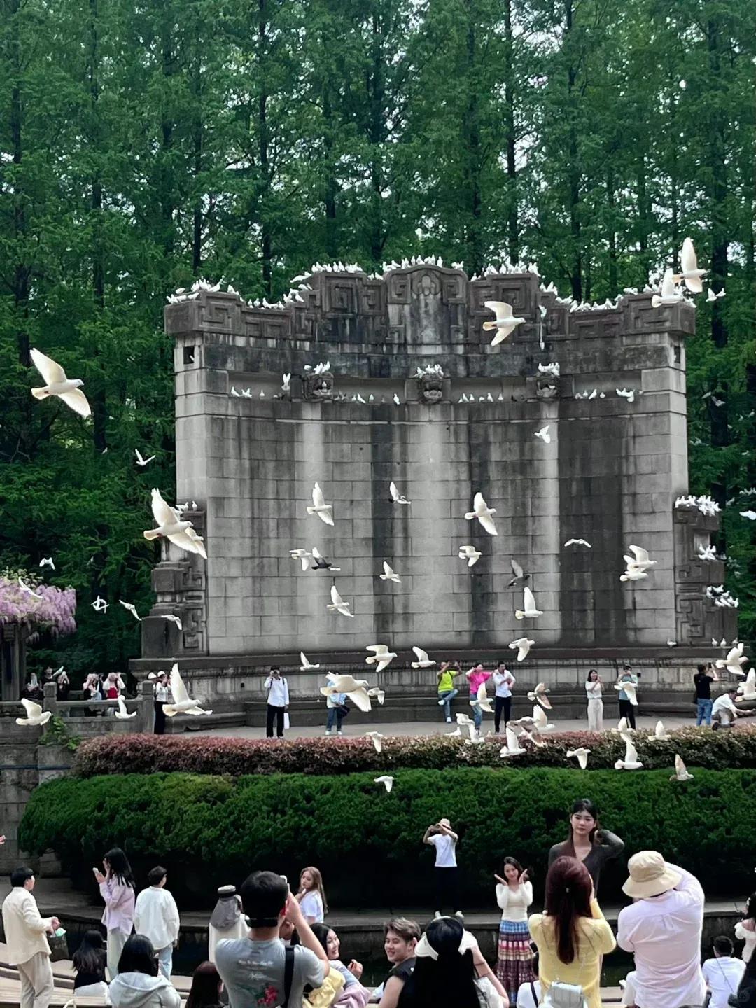 别从正门离开。从音乐台入口出去。花十元进来。人比鸽子多。要耐心等。等鸽群忽然飞起,扑棱棱地盘旋。那一刻,什么都值了。
