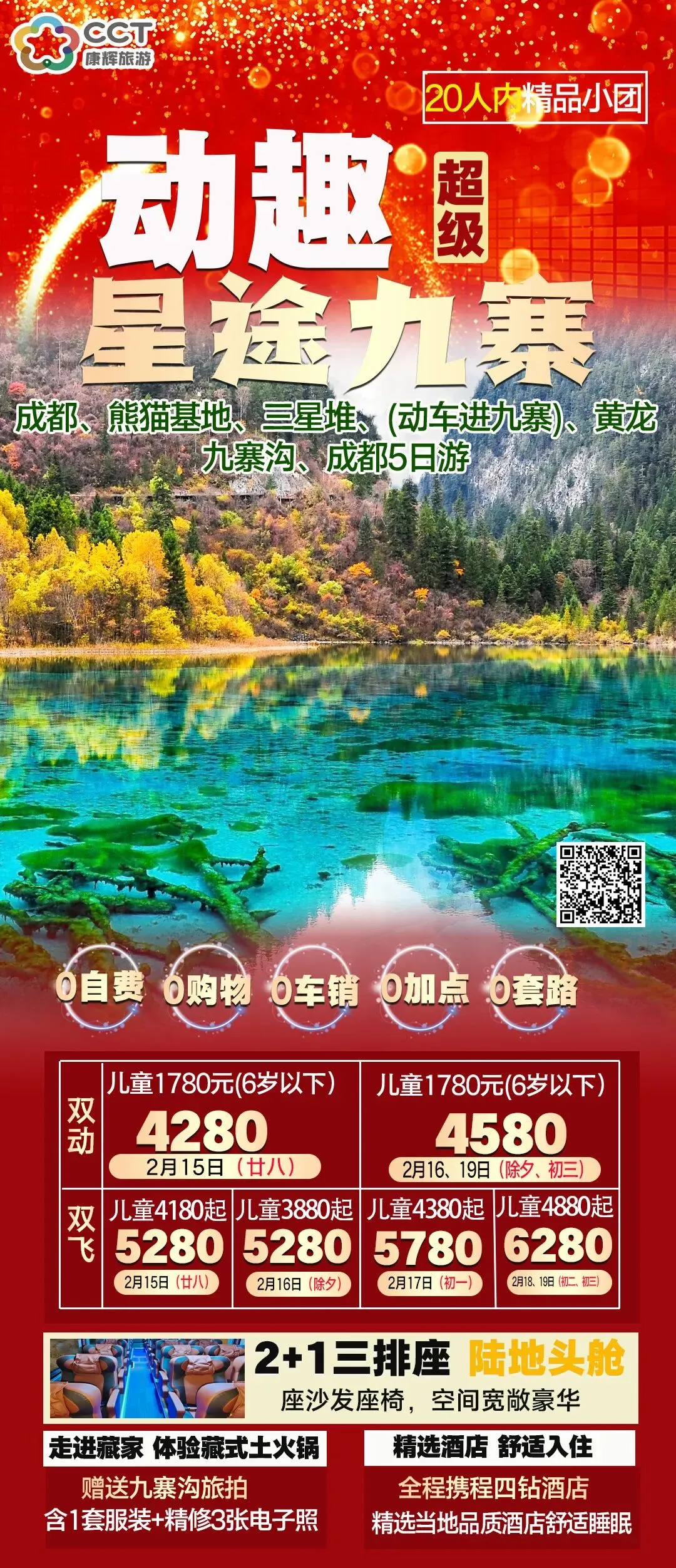 ①12.16-3.31 优惠退 90 元/人(熊猫基地 20+三星堆 20+九寨 30+黄龙 20)、免票退 180 元/人(熊猫基地 40+三星堆 40+九寨 60+黄龙 40)