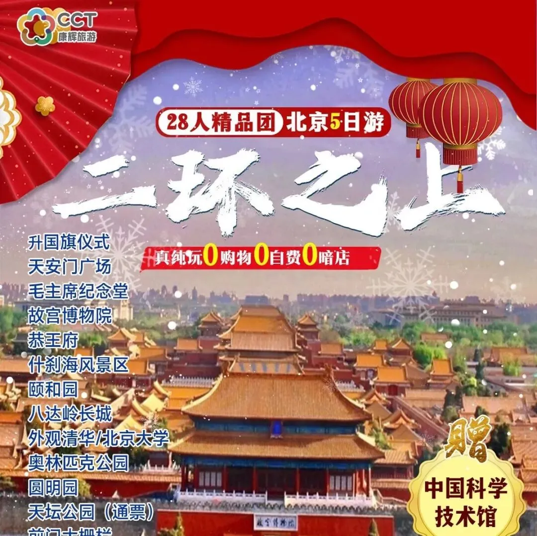 【春节◆北京】南京出发北京高铁5日游,全程无购物,无自费,纯净旅游,北京精华景点一网打尽。独家赠送科技馆!