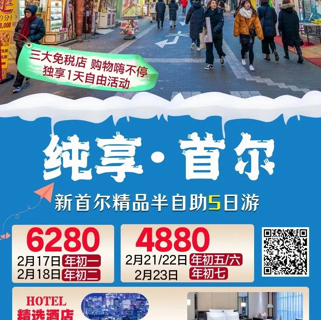 【春节◆韩国】南京直飞首尔4晚5天,精品半自由行,特别安排东大门地域酒店,品尝韩国美食。