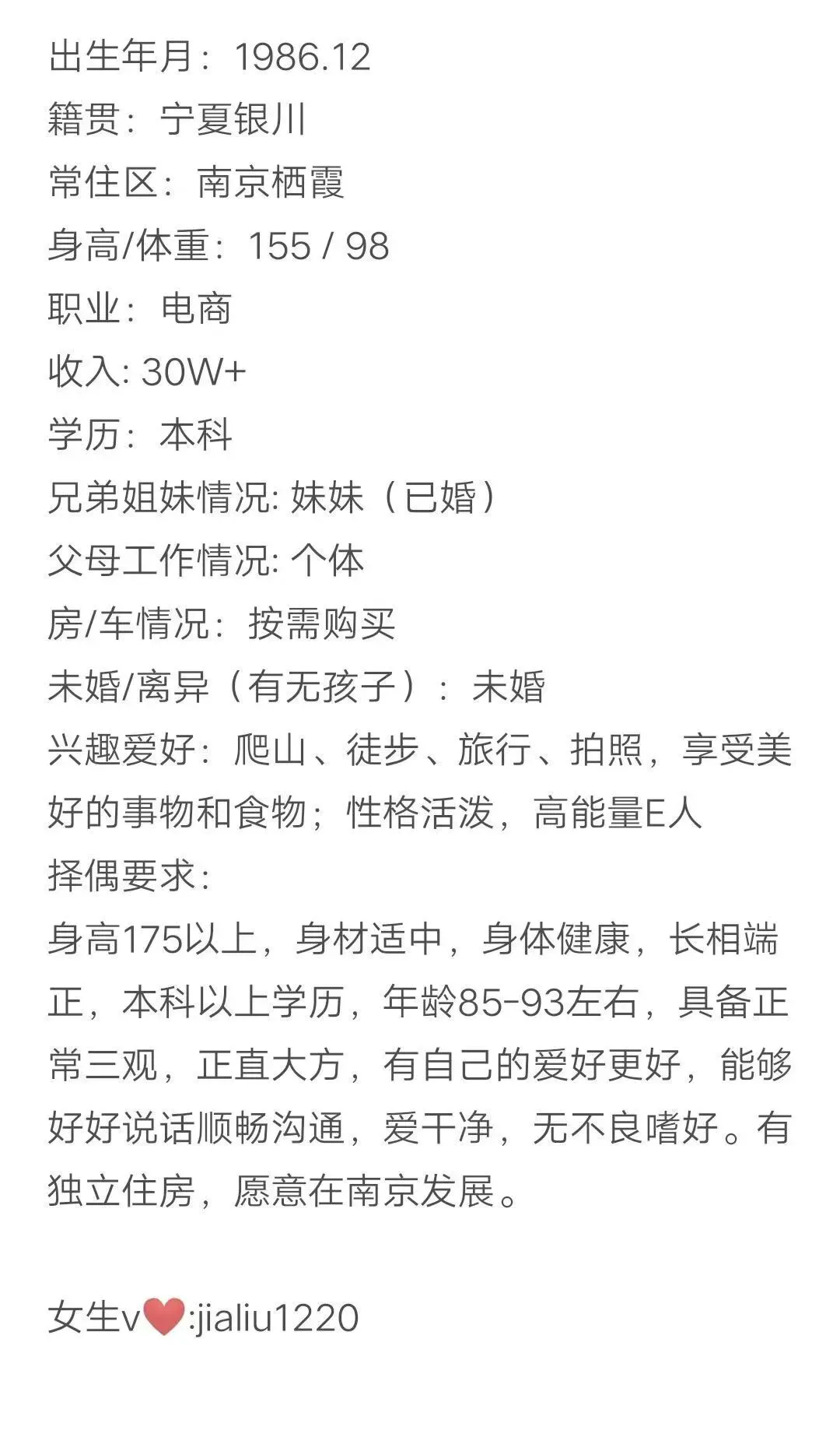 ⑤、【南京月老爷爷牵线(4866)】女,92年,身高162,目前单身,有房,南京浦口人,想找个有独立婚房、年入不低于18万的男友。