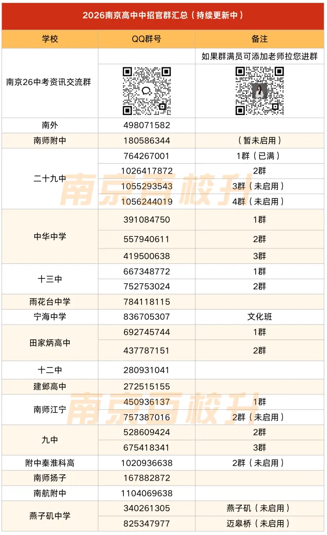 又有不少高中开放26年中考招生官方群!目前各高中已开放或后续会启用的官方群小笙学姐都汇总在推文中了,大家可以加一下目标高中的群,获取学校最新招生动态。特长生家长更是要加一下意向学校的群,后续资质审核都会在群内通知!