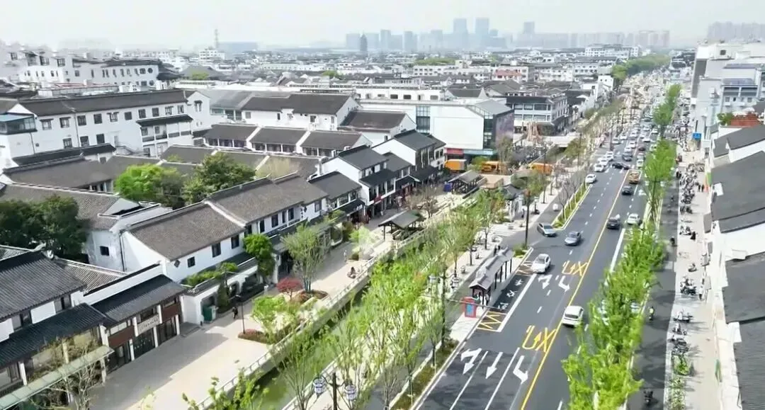 整个改造工程始于2023年5月,通过对原有道路沿线的景观提升、立面整治、路权优化,重点打造了滨河景观带,增设了文化要素、景观节点和特色驳岸。目标是打造 “入街即入园,入园即入画”的苏式“漫”生活街区。