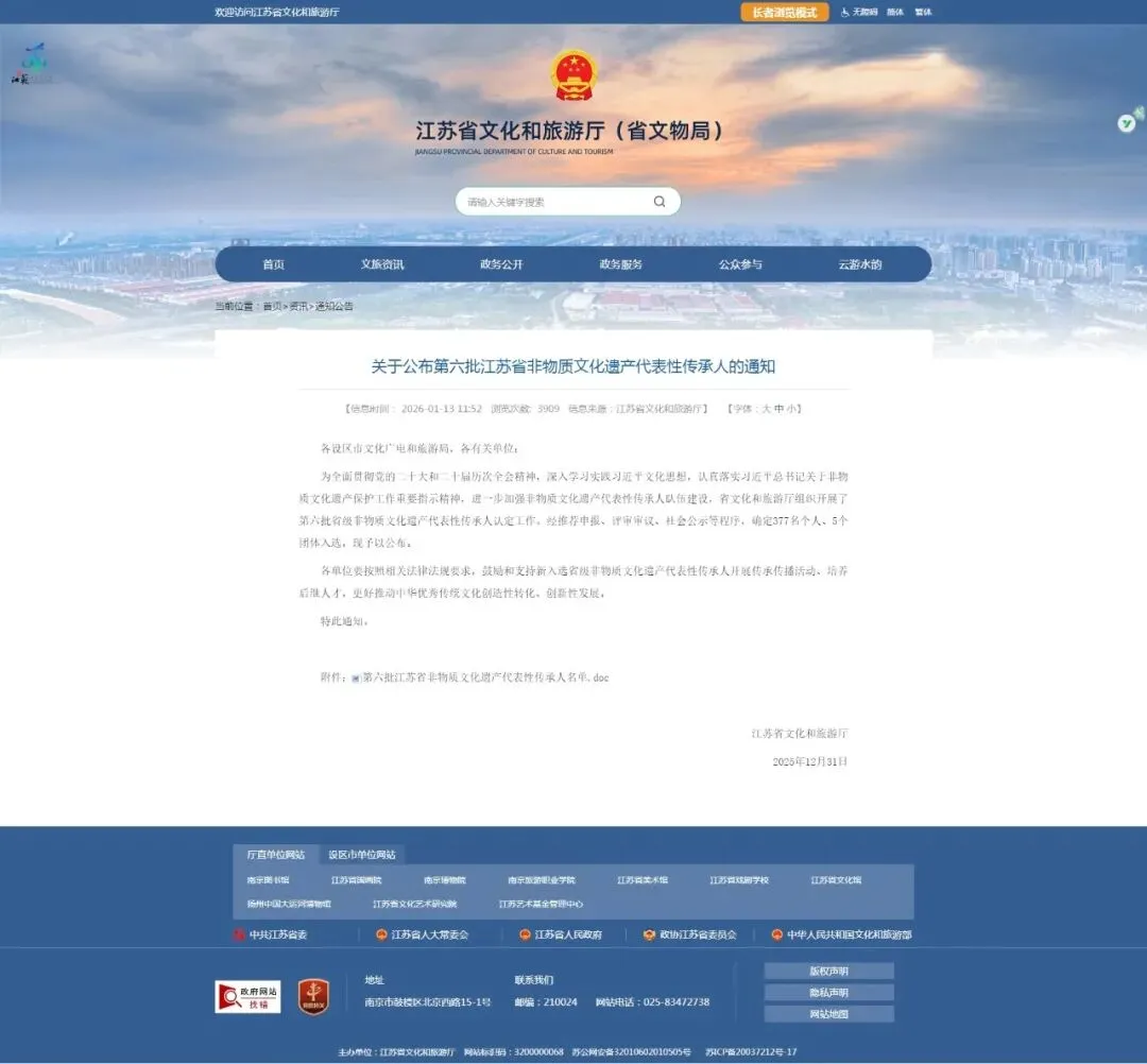 江苏省文化和旅游厅公示文件显示
