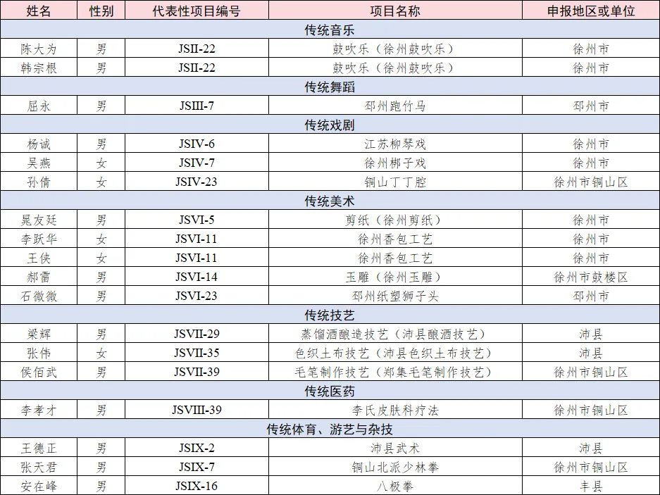 祝贺新入选的18位个人和1个团体! 这份省级荣誉,是对各位传承人卓越技艺与坚守精神的鼓舞,也映照出徐州非遗传承事业的勃勃生机。