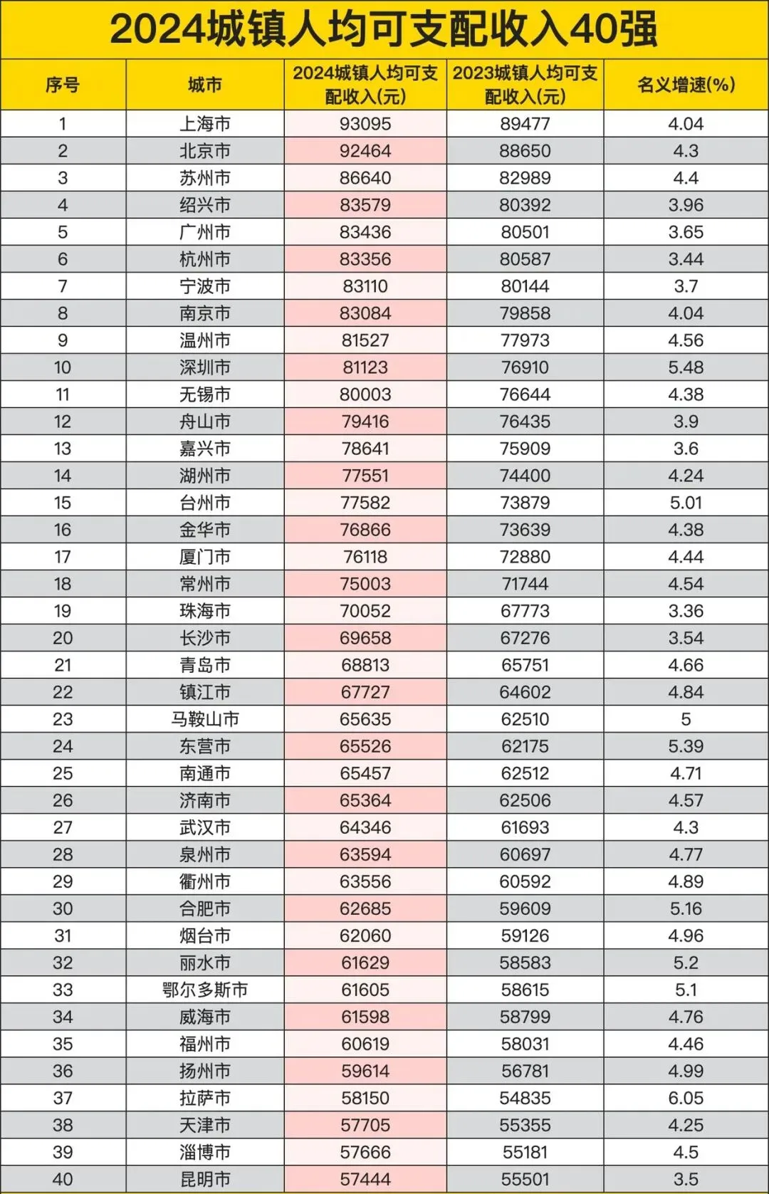 但真相是,2024年苏州城镇居民可支配收入已经达到了86640元,排名全国第三,仅次于上海(93095元)和北京(92464元),比杭州(83356元)和深圳(81123元)的上班族们都要高出好几千块钱。