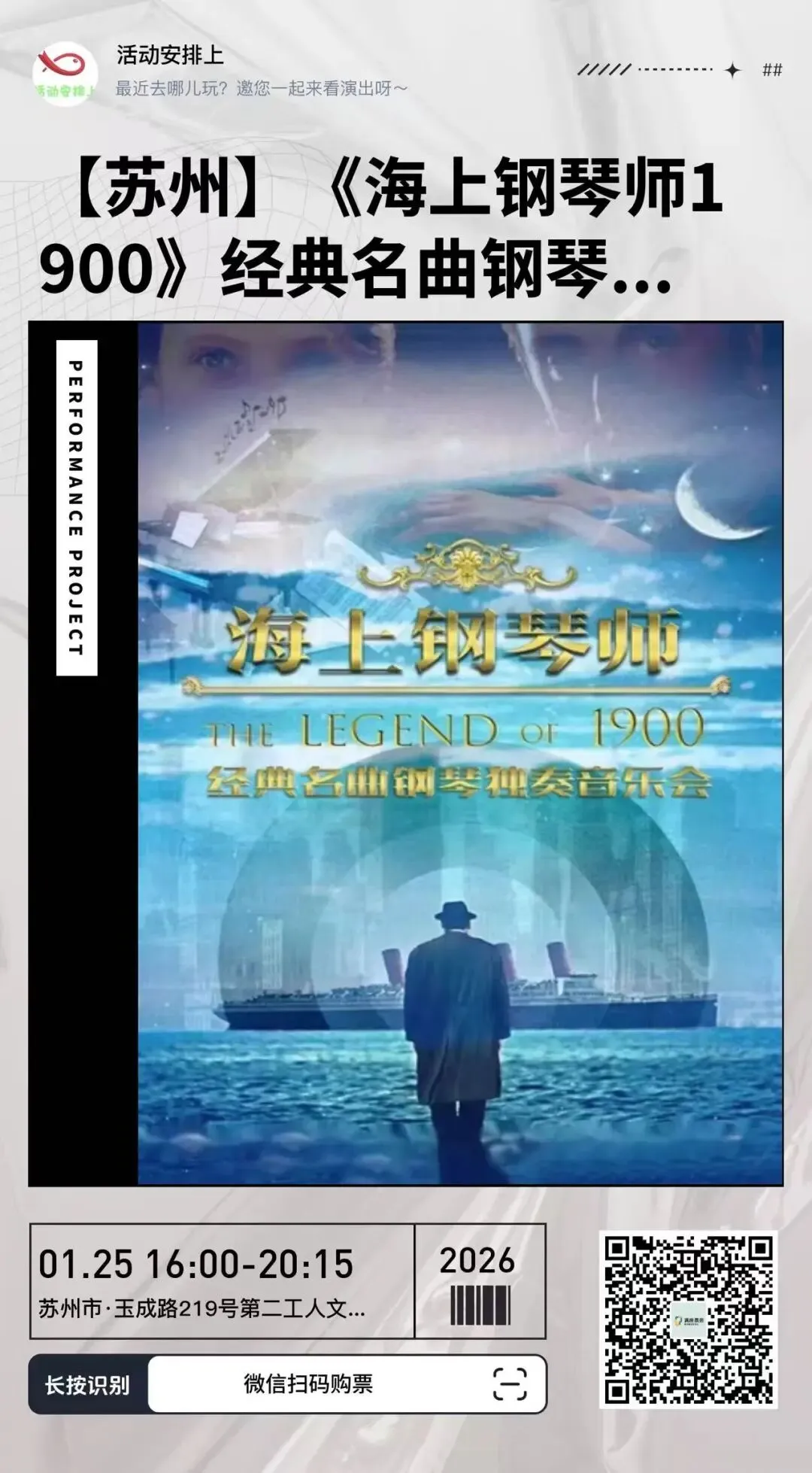 >【苏州2026.01.25】《海上钢琴师1900》经典名曲钢琴独奏音乐会
