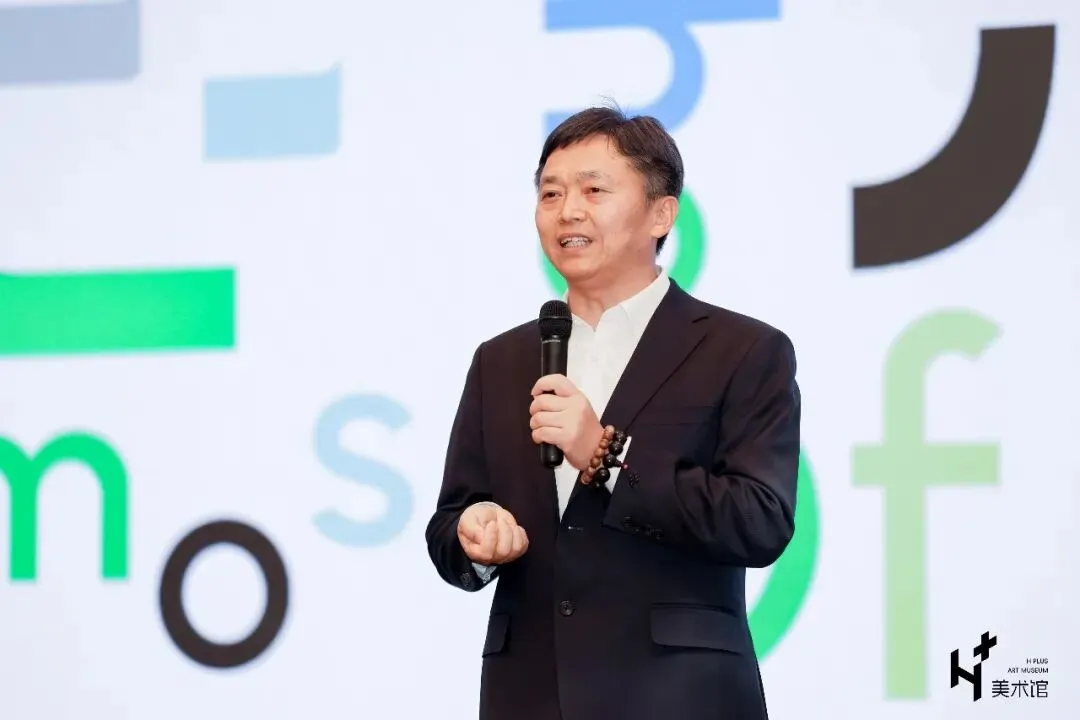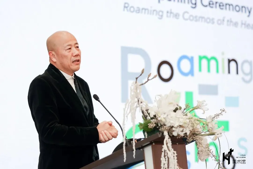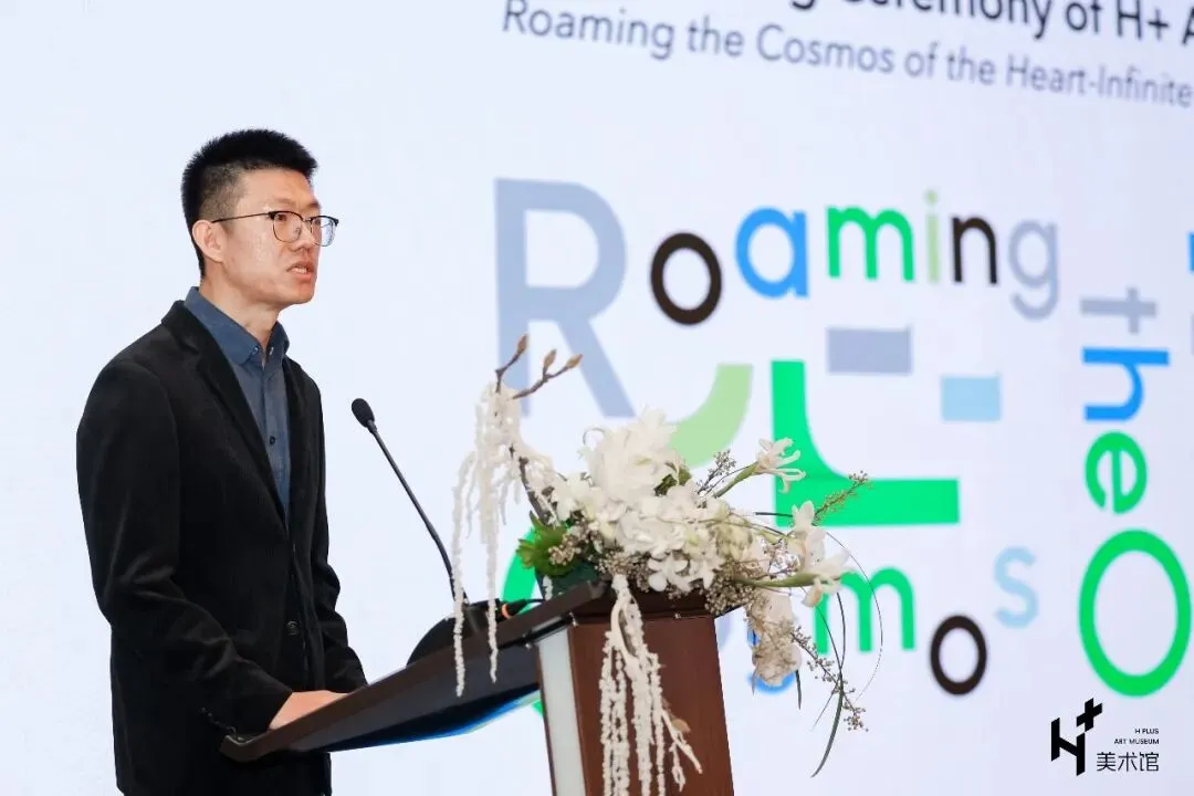 ▲ 策展人张子康在H+美术馆首展开幕仪式上发言