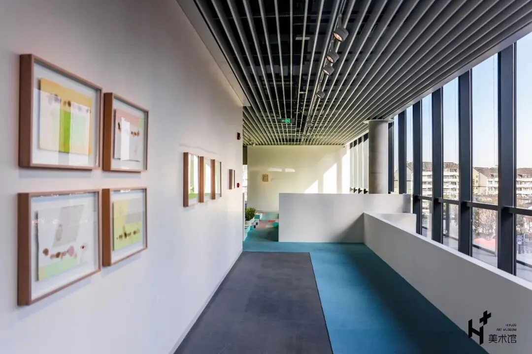 当外部条件迫使墙面趋于克制、开口受限时,内部空间就必须格外充实和令人满意。步入H+美术馆内部,自然光线经由天窗、狭长侧廊与与层间间隙被切割、引导和分级,在观众沿“回游”动线行走的过程中,光的强度与方向持续变化,形成明暗交替的节奏。让人们在移动中感到光线密度的渐变。一些区域刻意维持了一种园林式的幽暗,如同传统造园中的“夹景”与“障景”,以暗部制造视觉停顿,使随后抵达的明亮更具仪式感。