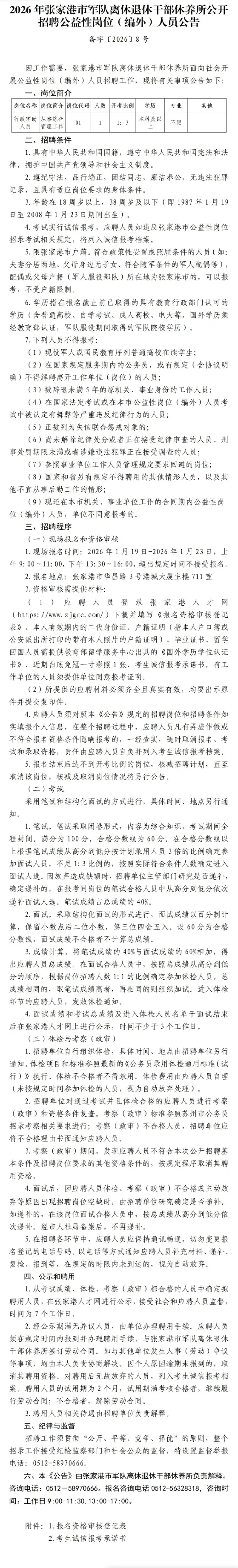 【声明】本公告来源于“张家港市退役军人事务局官微”,由“苏州考聊事业单位考试”公众号整理编辑,仅用于学习交流目的,若涉及侵权和错误信息,请扫描上方二维码联系予以更改或删除。