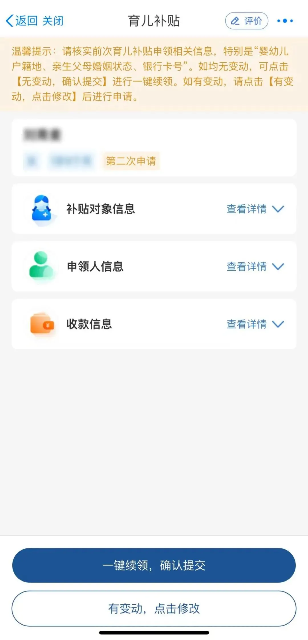 新一年育儿补贴线上申领的最大变化,是在去年的基础功能上增加了续领功能。也就是说,2025年已申领过育儿补贴且符合新一年继续申领条件的婴幼儿,其申领人可以进行续领申请。