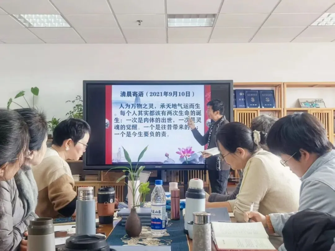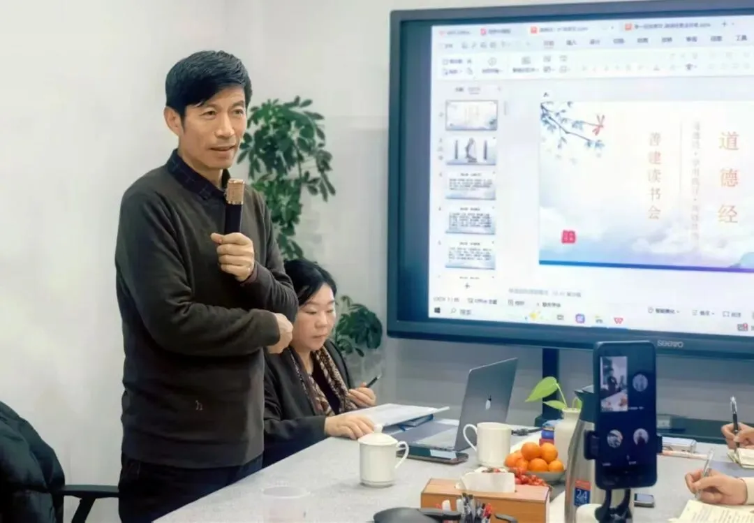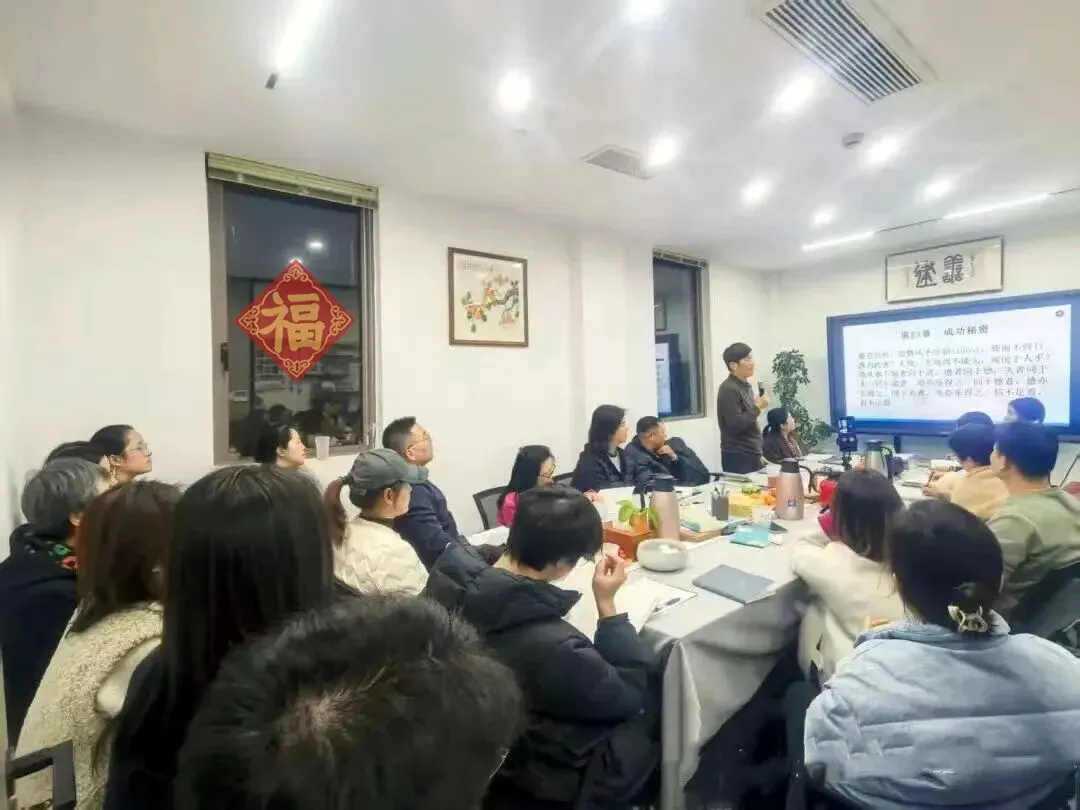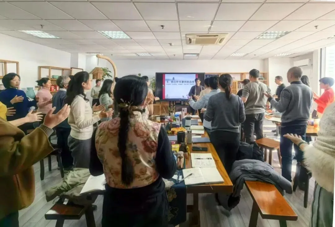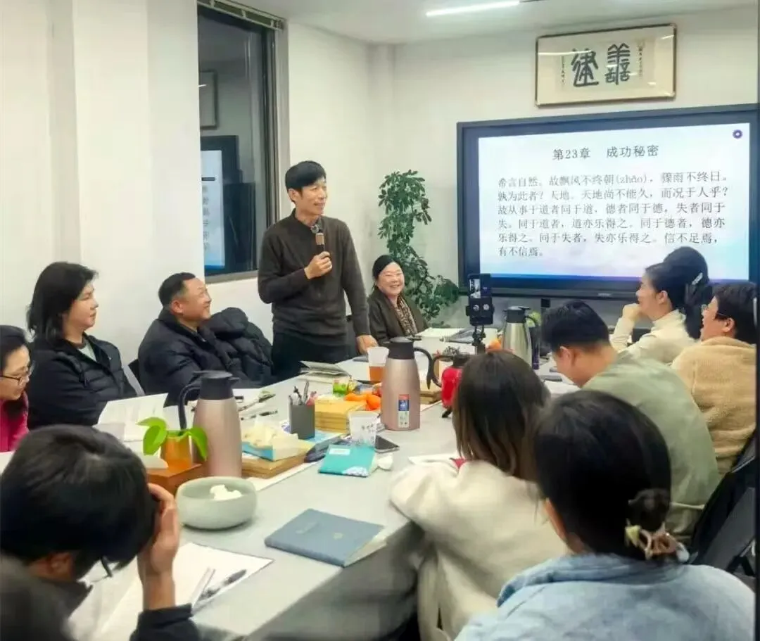 1月14日晚上,先生又应邀来到苏州善建读书会,为来自上海、义乌、常州、常熟等地的老师们做《道德经》第23章的分享。很多生活与工作在江南的书院弟子,听闻先生和刘老师一起来到苏州,纷纷结伴前来看望恩师与师母,同时聆听先生的传道授业。这个晚上,现场座无虚席,掌声阵阵,大家一直沉浸在中华传统文化与道德智慧的氛围里,生命得以滋养,心空得以照亮。